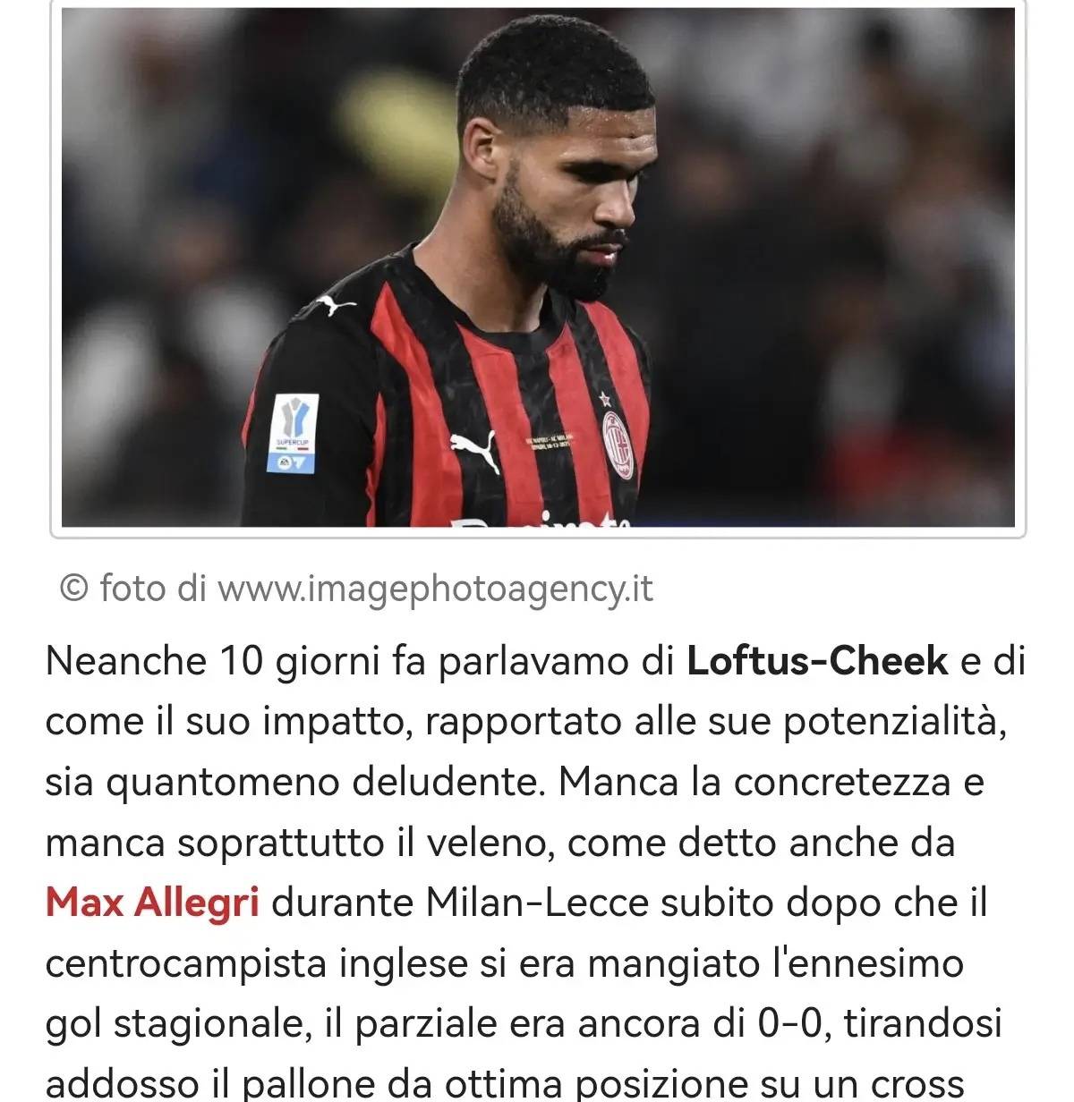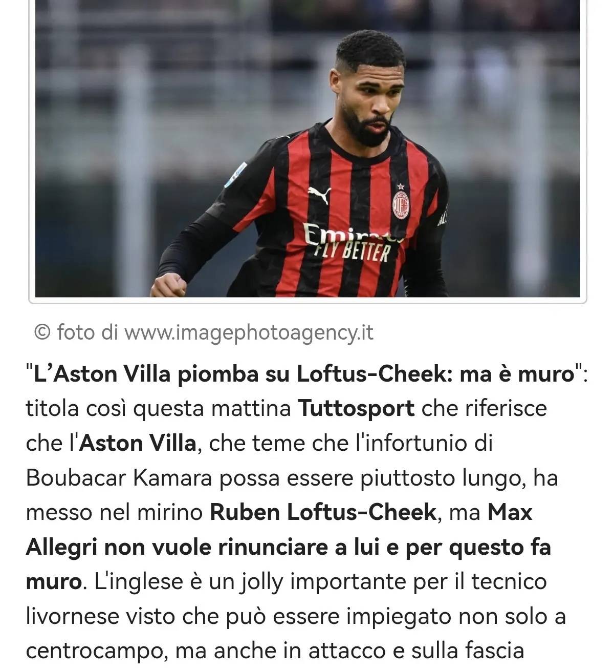 รายงานจากสื่อเซเรียอา: มิลานปฏิเสธการไล่ล่าของแอสตัน วิลล่าในการคว้าตัวชิค โดยอัลเลกรีไม่ต้องการให้เขาจากไป