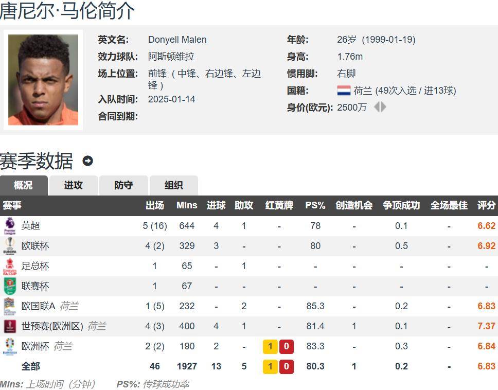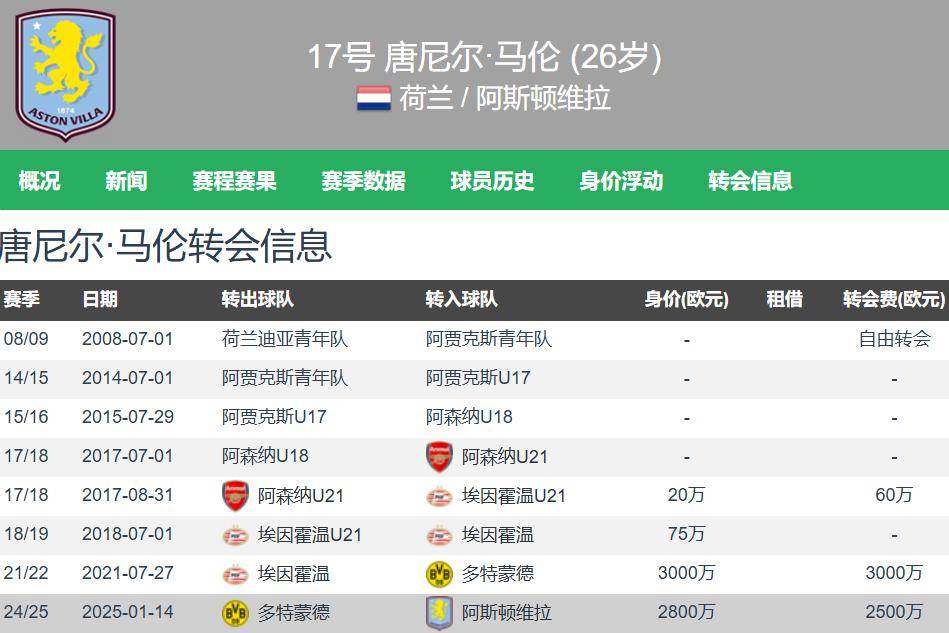 การอัปเดตล่าสุดจากแหล่งข่าวระบุว่า ดอนเยลล์ มาเลน กองหน้าชาวดัตช์วัย 26 ปีของแอสตัน วิลล่า จะย้ายไปร่วมทีมโรม่าด้วยสัญญายืมตัวในช่วงตลาดซื้อขายนักเตะฤดูหนาว โดยมีเงื่อนไขบังคับซื้อตัวในช่วงตลาดซื้อขายนักเตะฤดูร้อน โรม่าได้บรรลุข้อตกลงส่วนตัวกับมาเลนแล้ว โดยค่าตัวในการยืมตัวอยู่ที่ 2 ล้านยูโร และค่าตัวในการซื้อขาดในช่วงตลาดซื้อขายนักเตะฤดูร้อนหน้าอยู่ที่ 25 ล้านยูโรมาเลนได้รับอนุญาตจากแอสตัน วิลล่าให้เดินทางไปกรุงโรมเพื่อตรวจร่างกายและปิดดีลการย้ายทีมแล้ว นักเตะเดินทางถึงกรุงโรมเมื่อวันพุธที่ผ่านมา โดยคาดว่าการย้ายทีมจะเสร็จสมบูรณ์ในเร็วๆ นี้