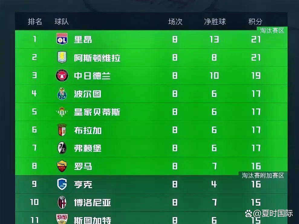 เมื่อการแข่งขันทั้ง 18 คู่สิ้นสุดลงในเวลาประมาณ 6:35 น. ตามเวลาปักกิ่ง วันที่ 30 มกราคม รอบแบ่งกลุ่มของยูโรปาลีกฤดูกาลนี้ได้ปิดฉากลงอย่างเป็นทางการแล้ว อันดับสุดท้ายของทีมที่เข้าร่วมแข่งขันทั้ง 36 ทีมได้รับการยืนยันแล้วทีมทั้งแปดที่ผ่านเข้ารอบ 16 ทีมสุดท้ายของยูโรปาลีก ฤดูกาล 2025-2026 โดยอัตโนมัติได้รับการยืนยันแล้ว ได้แก่ ลียง (ฝรั่งเศส), แอสตัน วิลล่า (อังกฤษ), มิดทิลลันด์ (เดนมาร์ก), เรอัล เบติส (สเปน), ปอร์โต้ (โปรตุเกส), บราก้า (โปรตุเกส), ไบรน์ (เยอรมนี), และ โรมา (อิตาลี)