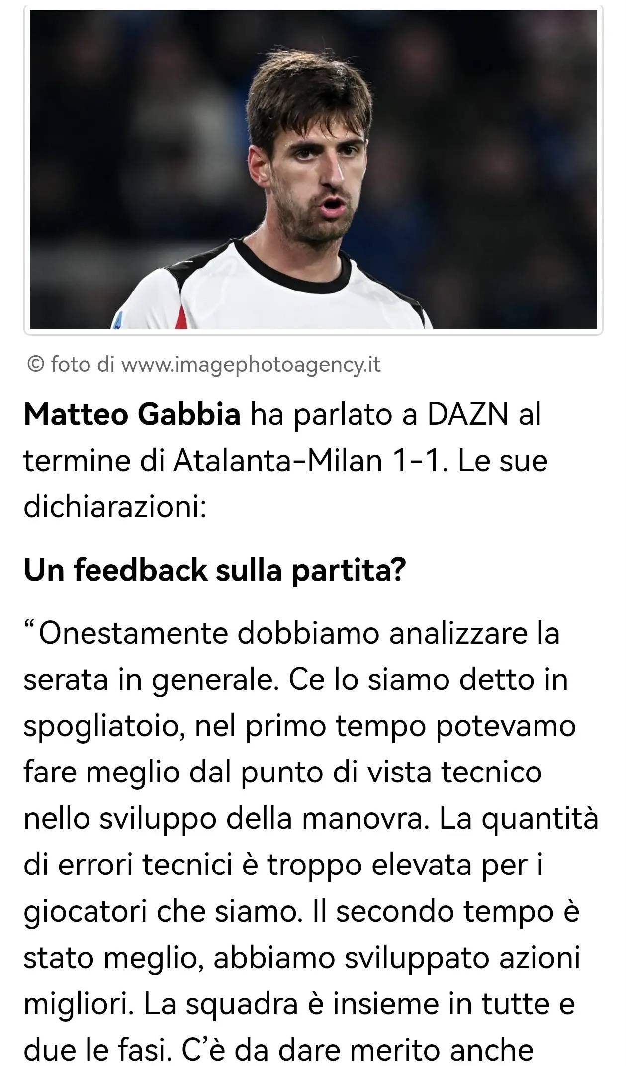 มัตเตโอ กาบเบียดินี ให้สัมภาษณ์กับ DAZN หลังจบเกมที่อตาลันต้าเสมอกับเอซี มิลาน 1-1: