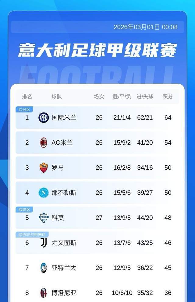 เวลา 22:00 น. ตามเวลาปักกิ่ง วันที่ 28 กุมภาพันธ์ การแข่งขันรอบที่ 27 ของฤดูกาล 2025-26 เซเรีย อา ได้มีการแข่งขันสำคัญ: คู่แข่งที่ไม่คาดคิด โคโม เปิดบ้านต้อนรับการมาเยือนของ เลชเช่ ที่กำลังเผชิญกับภัยคุกคามจากการตกชั้น