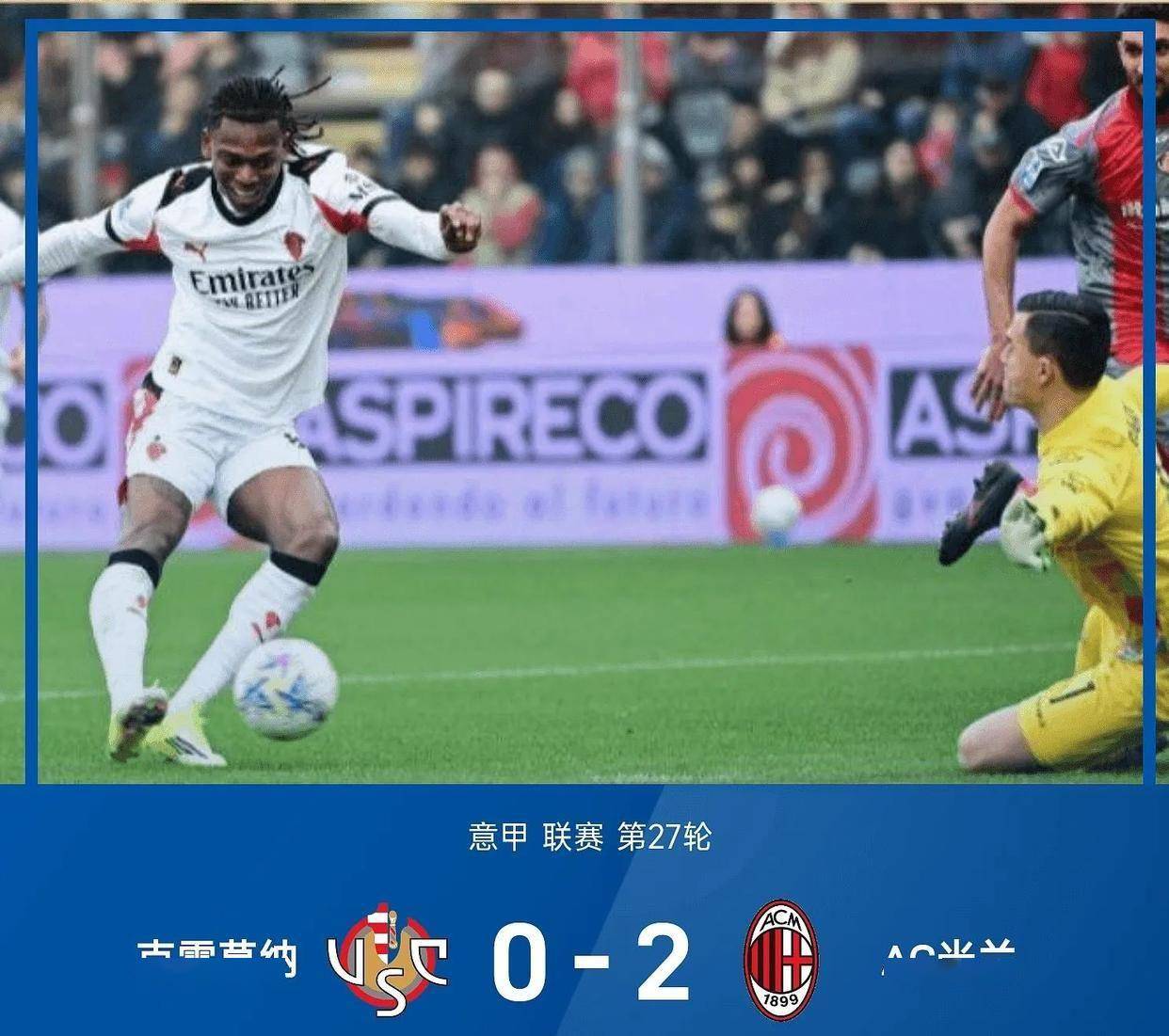 ชัยชนะของเอซี มิลานนั้นไม่ได้ง่ายดายอย่างที่ตารางคะแนนอาจบ่งบอก เมื่อต้องเผชิญหน้ากับเครโมเนเซ่ที่กำลังตกอยู่ในอันตรายจากการตกชั้น มิลานครองเกมได้เหนือกว่าแต่กลับไม่สามารถเจาะแนวรับของคู่แข่งได้ เลเอาและพูลิซิชพลาดโอกาสทองติดต่อกันแบบตัวต่อตัว ทำให้อัลเลกรีแสดงความหงุดหงิดอย่างเห็นได้ชัดข้างสนาม