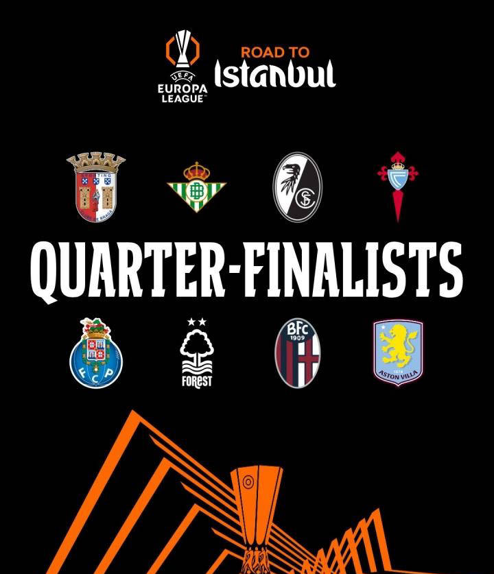 จนถึงตอนนี้ รอบรองชนะเลิศของยูโรป้าลีกได้รับการตัดสินแล้ว และการแข่งขันสี่กลุ่ม ได้แก่ บราก้ากับเรอัล เบติส, ไฟร์บูร์กกับเซลต้า, ปอร์โต้ ทอย น็อตติงแฮม ฟอเรสต์ และโบโลญญากับแอสตัน วิลล่า รอบแรกของรอบก่อนรองชนะเลิศจะเริ่มในวันที่ 8 และ 10 เมษายน และรอบต่อไปจะจัดขึ้นในวันที่ 16 และ 17