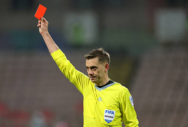 ติลปาน ผู้ตัดสินชาวฝรั่งเศส โชว์ใบแดงให้บาสโทนี แบสโทนี กองหลังตัวกลางของอิตาลี