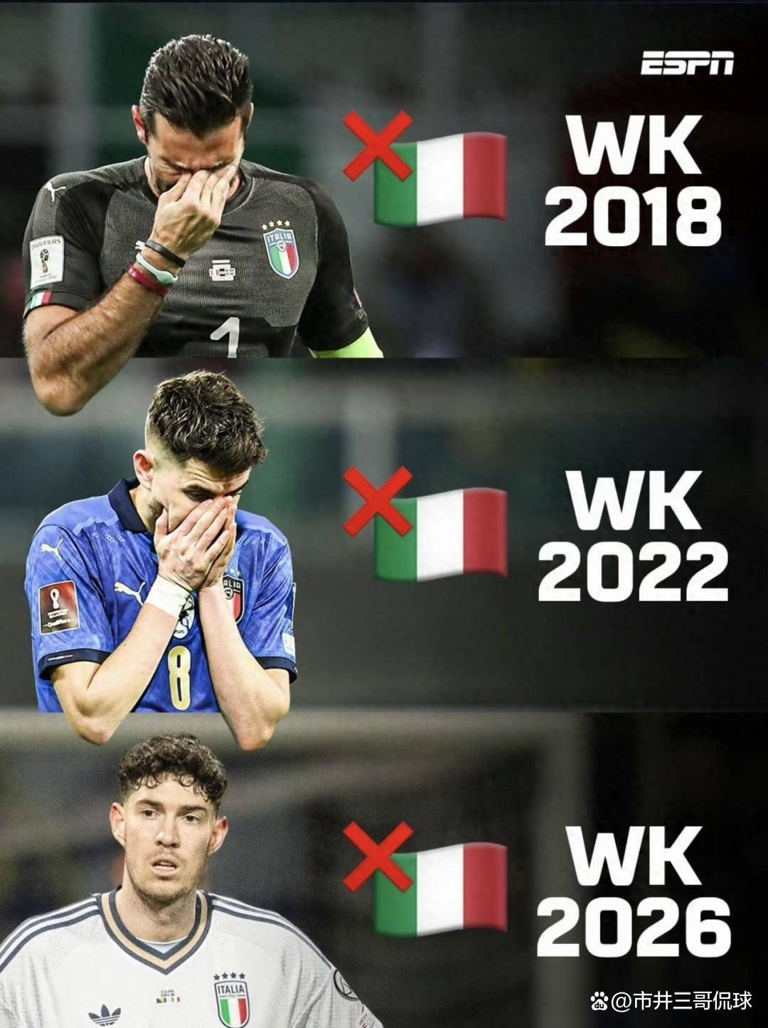 ขั้นตอนของเกมเป็นกังวล ในที่สุด คีนก็ขึ้นนำให้อิตาลี แต่ก่อนจบครึ่งแรก ใบแดงของบาสโทนี่เปลี่ยนสถานการณ์โดยตรง อิตาลีซึ่งต่อสู้เพื่อคนคนเดียวต่อสู้อย่างหนักเพื่อปกป้อง แต่ Bossian และ Hei เสมอกันเมื่อสิ้นสุดเวลาปกติ ในการยิงจุดโทษ บลูส์ถล่มลงอย่างสมบูรณ์ และสกอร์ 1-4 ก็เหมือนมีดแทงทะลุหัวใจของแฟนบอลชาวอิตาลีทุกคน นี่ไม่ใช่แค่ความโชคร้ายเท่านั้นที่พวกเขายังอยู่ในเวทีฟุตบอลโลกที่บราซิลเมื่อ 12 ปีที่แล้ว แต่ตั้งแต่นั้นมารอบเพลย์ออฟก็กลายเป็นฝันร้าย: พวกเขาถูกกำจัดโดยสวีเดนในปี 2018 แพ้มาซิโดเนียเหนือในปี 2565 และตกอยู่ภายใต้เท้าของโบและแบล็กในปี 2569