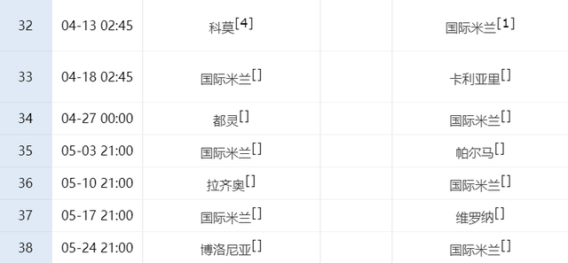 ตามตารางการแข่งขัน อินเตอร์ มิลาน จะเป็นแขกรับเชิญกับโคโม ลาซิโอ และโบโลญญาในช่วง 7 นัดสุดท้ายของเกม ซึ่งเป็นเกมสุดท้ายที่พวกเขาอาจเสียคะแนน อย่างไรก็ตาม แม้ว่าอินเตอร์ มิลานจะแพ้ทั้งสามเกม แต่เอซี มิลานก็ไม่มีโอกาสพลิกรอบได้ เพราะความน่าจะเป็นที่จะชนะใน 7 เกมหลังนั้นต่ำเกินไป ตัดสินจากผลงานของเอซี มิลาน ในฤดูกาลนี้ พวกเขาจะเสียแต้มใน 7 นัดต่อไปมากกว่าอินเตอร์ มิลาน ไม่ใช่เรื่องเกินจริงที่จะบอกว่างานต่อไปของเอซี มิลานคือการรักษาสี่อันดับแรก และอย่าถูกโคโมและยูเวนตุสแซงไปในที่สุด และเขาไม่สามารถแม้แต่จะได้ที่นั่งในแชมเปี้ยนส์ลีก