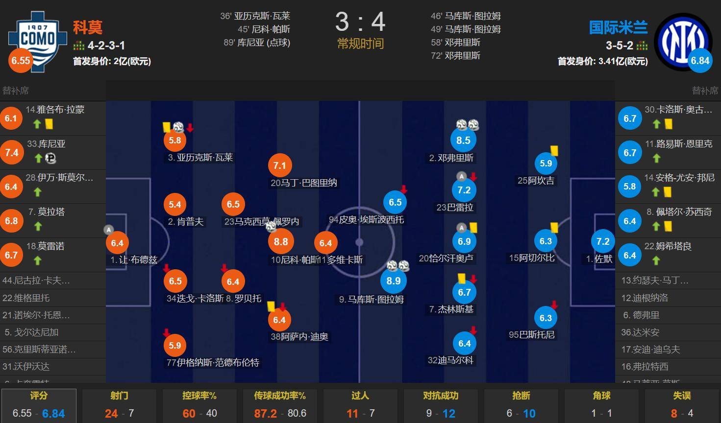 Como vs Inter Milan, Fabregas เป็นรูปแบบ 4231, Duvicas อยู่ข้างหน้า, ผ่านอยู่ข้างหลัง และ Dior และ Baturina ทั้งสองข้าง Roberto และ Perone อยู่ในเอวด้านหลัง Van del Breput, Carlos, Kempf และ Valle ฟอร์มสี่หลัง Boutz Guard ครั้งแรกมีมูลค่า 200 ล้านยูโร 4.1 พันยูโร