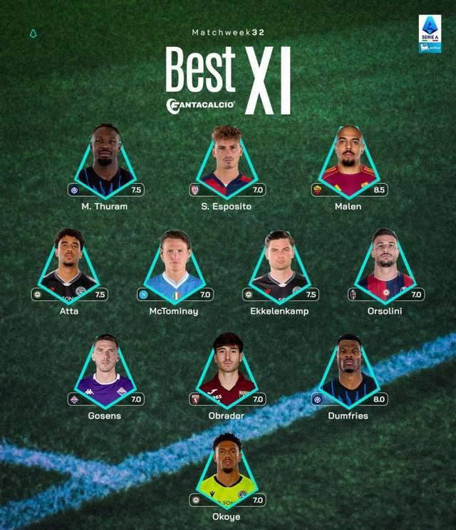หลังจบรอบ 32 ของเซเรีย อา คัดทีมชุดสุดฮาของรอบนี้รวมนักเตะอย่าง มาร์คัส ธุรัม และดัมมี่ รายชื่อเฉพาะมีดังนี้: