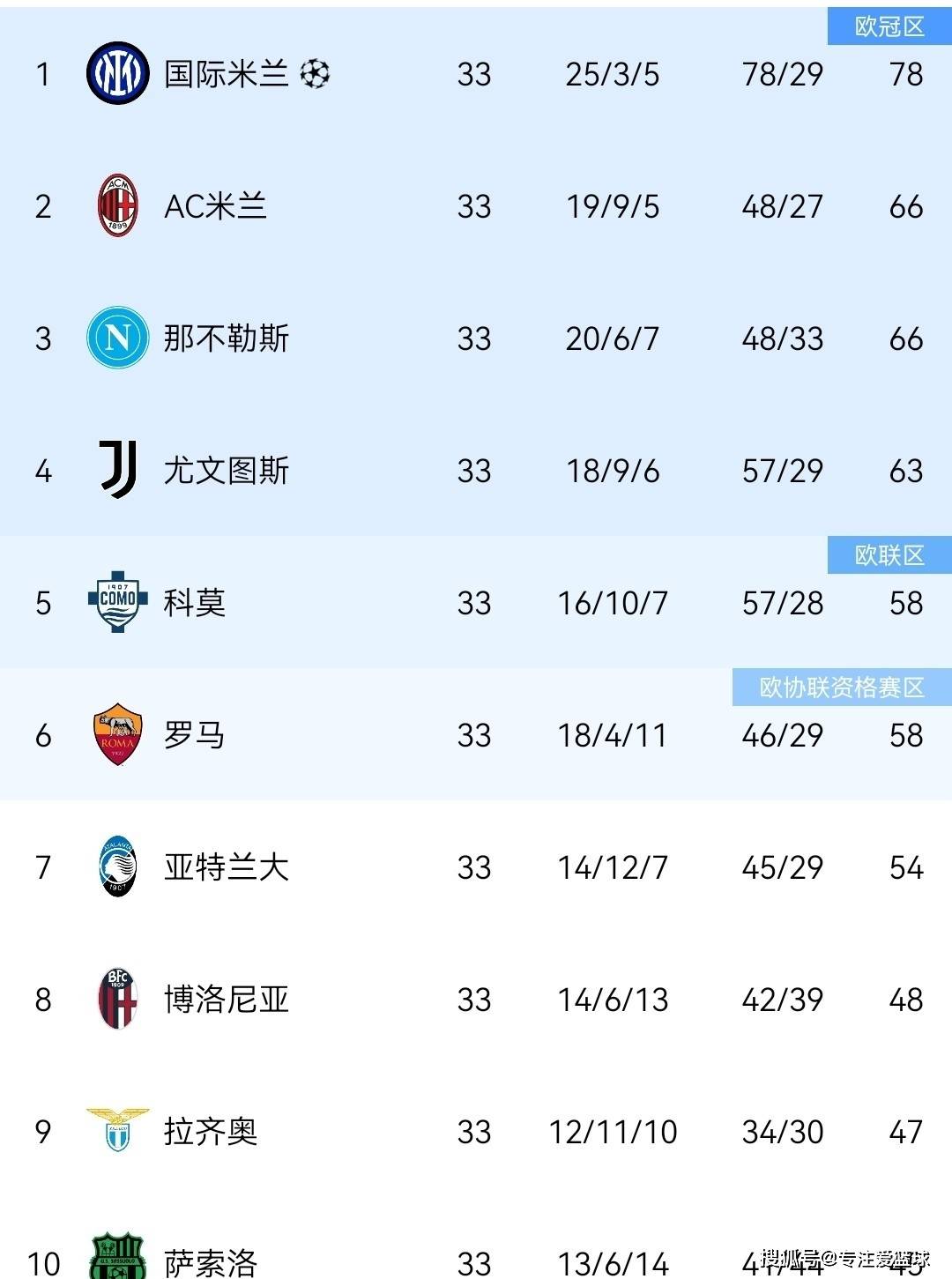 หลังจากรอบที่ 33 ของเซเรียอาเมื่อคืนนี้ เอซี มิลานชนะ 1-0 จากเวโรน่า และยูเวนตุสชนะโบโลญญา 2-0 ที่บ้าน ทั้งสองทีมแข่งขันกันเพื่อความนิยมสี่คนและได้สามแต้ม แต่ผู้ไล่ล่า Como, Rome และ Atlan ไม่ชนะ และบางทีมก็แพ้ คราวนี้สามตัวแรกมีเสถียรภาพ และตำแหน่งที่สี่ถูกล็อคโดยพื้นฐานแล้ว และเหลือเพียงตำแหน่งเดียว แต่มีสามทีมที่สามารถจ้องมองที่ตำแหน่งนี้ได้