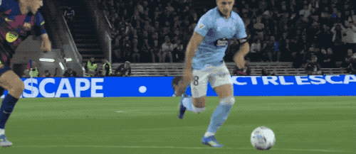 ในนาทีที่ 37 Yamal โยนทั้งสองคนออกไปเพื่อตั้งรับแล้วข้ามด้านล่าง และส่วนหัวของ Almo ก็ตรงและผลักออกแนวล่าง