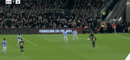 น้อยกว่า 20 วินาทีหลังจากเปิด Ferran บินเพื่อหยุดการส่งของ Alonso Yamal หลบแนวรับ จากนั้นการยิงก็กว้างเล็กน้อย
