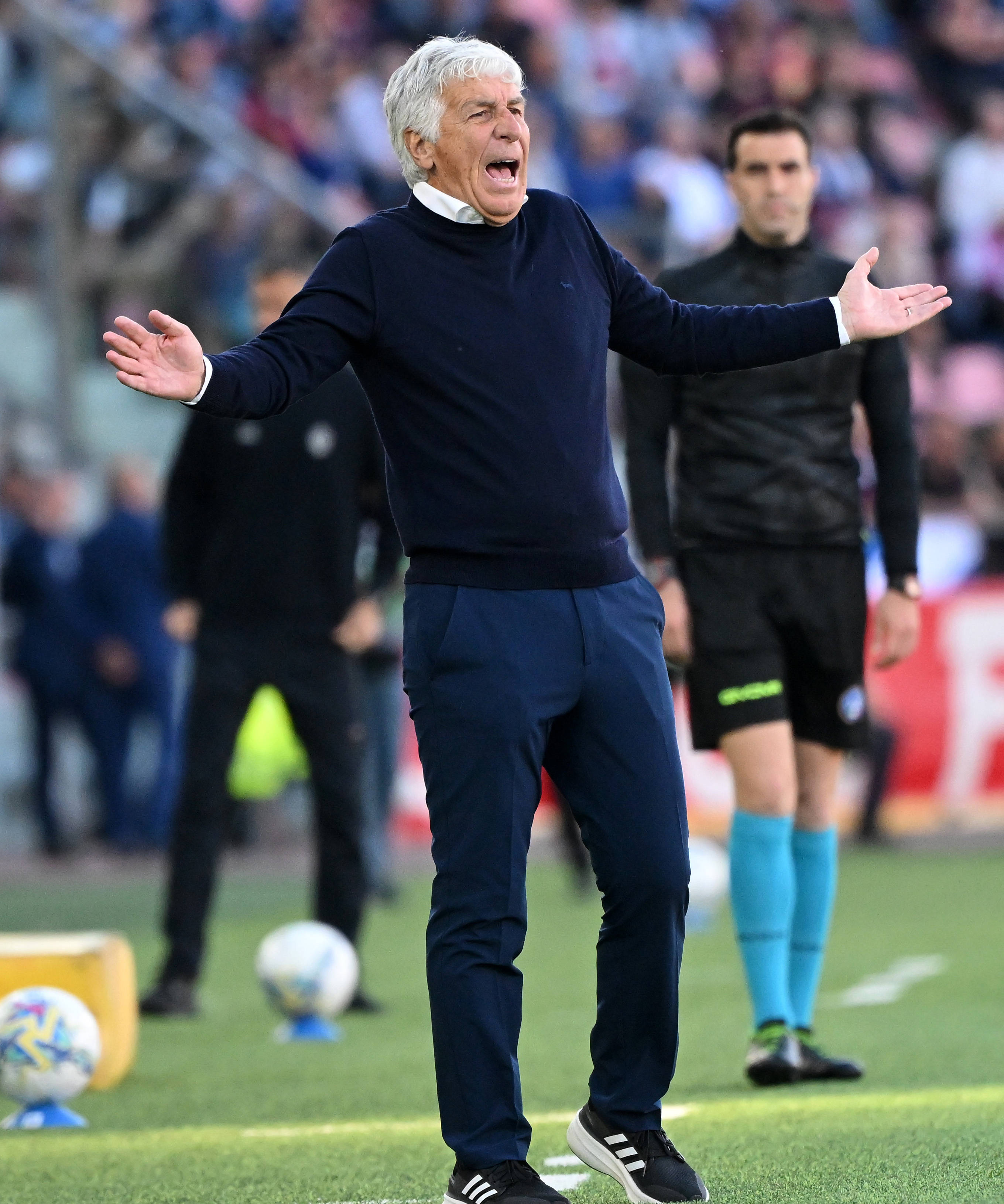 เมื่อวันที่ 25 เมษายน โค้ชของโรม่า กัสเปรินี อยู่ข้างสนาม สำนักข่าวซินหัว (ภาพโดย Alberto Linglia)