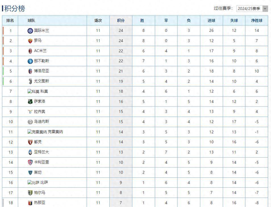 การแข่งขันในรอบที่ 11 ของเซเรีย อา เมื่อคืนที่ผ่านมา เป็นการแข่งขันที่ดุเดือดมาก ผลการแข่งขันทำให้เกิดการเปลี่ยนแปลงอย่างมากในตารางคะแนนของลีก