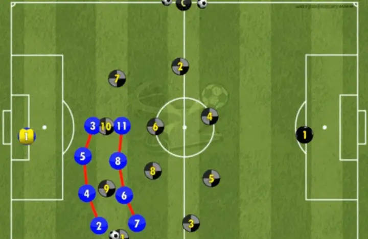 ดังนั้น เมื่อดูการแข่งขัน จะสังเกตได้ว่าเมื่อผู้เล่นหมายเลข 11 ของฝ่ายรุกได้รับบอล เส้นทางข้างหน้าจะถูกปิดกั้นอย่างสมบูรณ์ และเพื่อนร่วมทีมหมายเลข 9 และหมายเลข 10 ที่อยู่ใกล้เคียงไม่มีพื้นที่ในการรับบอล ในจุดนี้ ทางเลือกเดียวที่เป็นไปได้คือส่งบอลกลับ