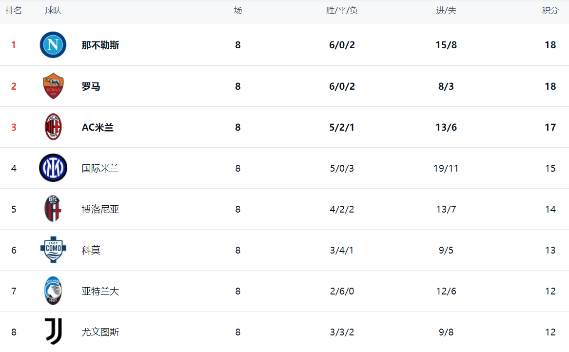 ในตารางลีก นาโปลีครองตำแหน่งจ่าฝูงด้วย 18 คะแนน จาก 6 ชัยชนะ และ 2 ความพ่ายแพ้ โรม่ามีผลงานเท่ากัน แต่ครองอันดับสองเนื่องจากมีประตูได้เสียที่น้อยกว่า เอซี มิลาน ตามมาเป็นอันดับสามด้วย 17 คะแนน จาก 5 ชัยชนะ 2 เสมอ และ 1 ความพ่ายแพ้ อินเตอร์ มิลาน ครองอันดับสี่ด้วย 15 คะแนน จาก 5 ชัยชนะ และ 3 ความพ่ายแพ้โบโลญญ่าอยู่ในอันดับที่ห้าด้วย 14 คะแนน โคโมอยู่ในอันดับที่หกด้วย 13 คะแนน อตาลันต้า, ยูเวนตุส และอูดิเนเซ่ต่างมี 12 คะแนน หลังจากชัยชนะในรอบนี้ ลาซิโอได้เลื่อนขึ้นสู่อันดับที่สิบด้วย 11 คะแนน