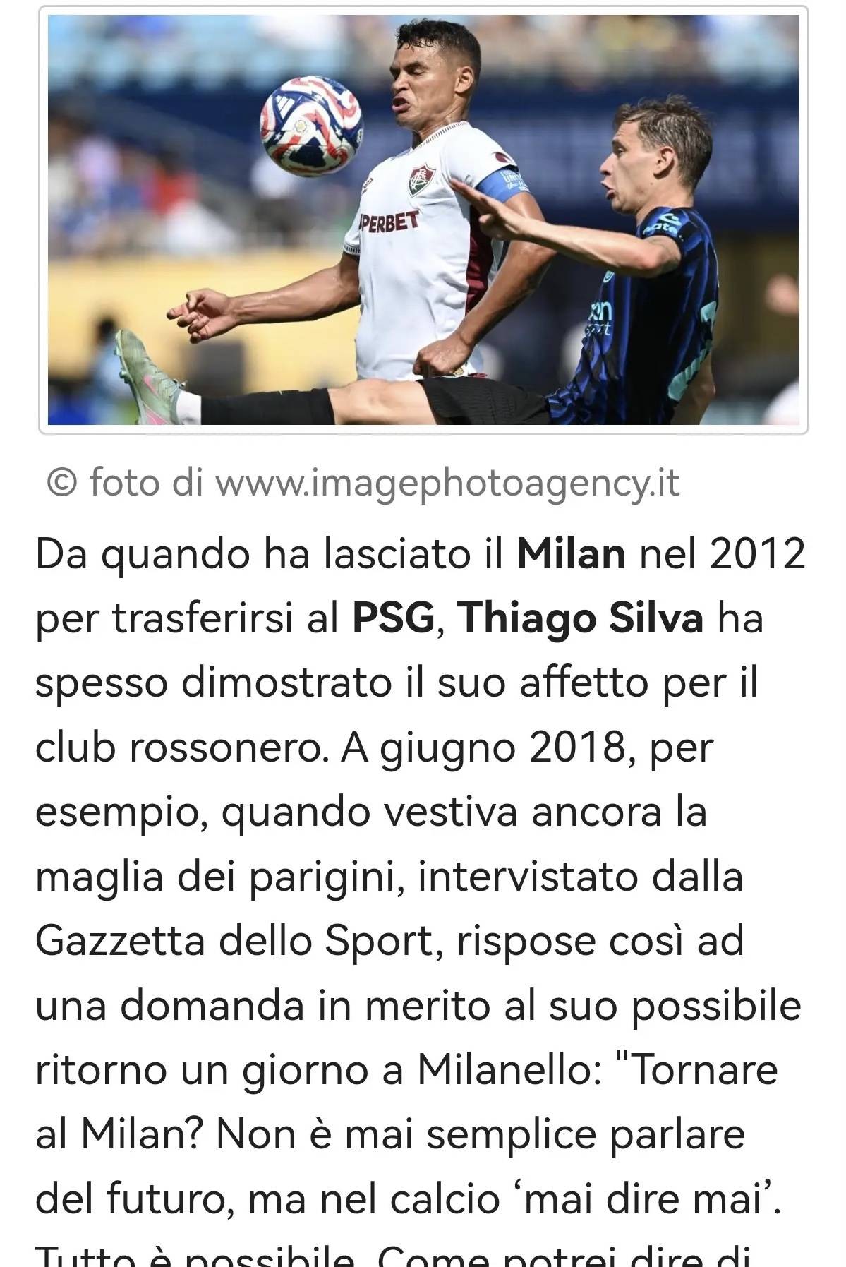 ในช่วงหลายปีต่อมา ติอาโก้ ซิลวา ย้ายไปมาระหว่างเชลซีและฟลูมิเนนเซ่ แต่เอซี มิลานยังคงมีที่อยู่ในความคิดและหัวใจของเขาเสมอ ในเดือนกรกฎาคม 2025 เพียงไม่กี่เดือนที่ผ่านมา หลังจากเอาชนะอินเตอร์ มิลานเพื่อเข้าสู่รอบก่อนรองชนะเลิศของสโมสรโลก นักเตะในเสื้อสีเขียวและทองเปิดเผยกับ Mediaset ว่า: "ผมได้ติดตามอินเตอร์ มิลานอยู่หรือเปล่า?ผมเป็นแฟนฟุตบอล สัปดาห์นี้ผมโทรหาอัลเลกรี – เราเป็นเพื่อนที่ดีต่อกัน ผมถามเขาเกี่ยวกับอินเตอร์ และเขาพูดถึงสโมสรนี้ในแง่ดีมาก เพราะเขาให้ความเคารพพวกเขาอย่างมาก เขาให้ข้อมูลเชิงลึกที่ยอดเยี่ยมแก่ผม เราได้คุยเรื่องมิลานไหม? เราไม่มีเวลาที่จะลงลึกในเรื่องนั้น มันสั้นเกินไป แต่ผมบอกเขาว่าถ้าเป็นไปได้ในเดือนมกราคม ผมจะแวะไปหาเขาและอิบราฮิโมวิช
