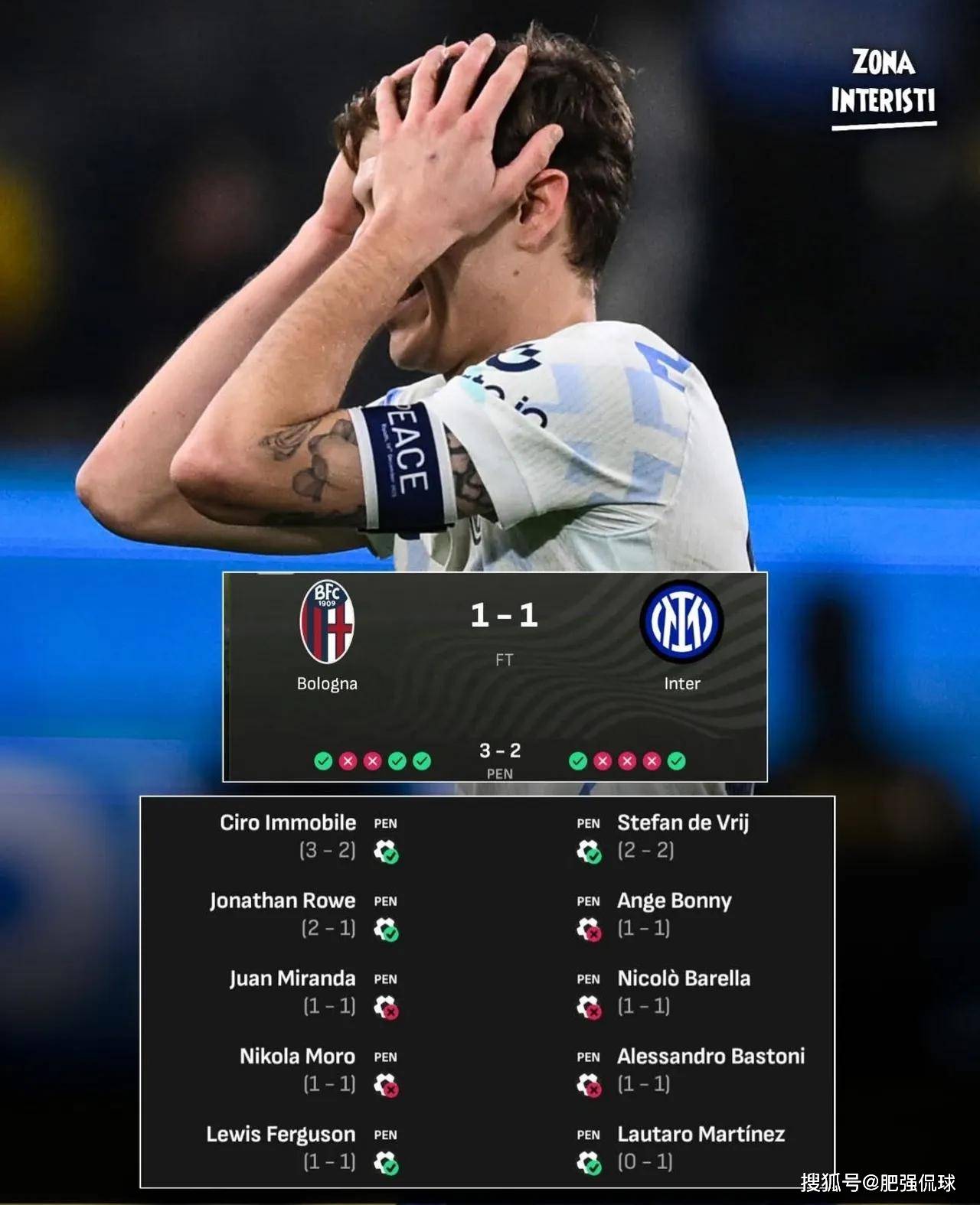 หลายคนเชื่อว่าซิโวเป็นแพะรับบาปของความพ่ายแพ้ครั้งนี้ แต่ก่อนหน้านี้อินเตอร์ก็ทำได้เพียงชนะหนึ่งนัด เสมอสามนัด และแพ้สองนัด จากการเจอกันหกครั้งกับโบโลญญา ซึ่งไม่ใช่สถิติที่โดดเด่นอะไร หากอินซากีที่มีประสบการณ์ยังประสบปัญหา แล้วผู้จัดการทีมมือใหม่อย่างซิโวจะลำบากขนาดไหน!แน่นอนว่า Zivo ต้องรับผิดชอบ ความผิดพลาดที่เห็นได้ชัดที่สุดคือการไม่ฝึกซ้อมการยิงจุดโทษล่วงหน้า เมื่อพิจารณาจากรูปแบบการแข่งขันที่หากเสมอกันหลังจาก 90 นาทีจะต้องยิงจุดโทษ ซึ่งเป็นจุดอ่อนอย่างหนึ่งของทีม พวกเขาจึงละเลยที่จะแก้ไขจุดสำคัญนี้ ผลลัพธ์ก็ชัดเจน: แม้แต่ผู้เล่นที่มีประสบการณ์อย่าง Barella และ Bastoni ก็ยังยิงจุดโทษได้ต่ำกว่ามาตรฐาน จะโทษ Bonni ผู้เล่นอายุน้อยก็คงไม่ได้!