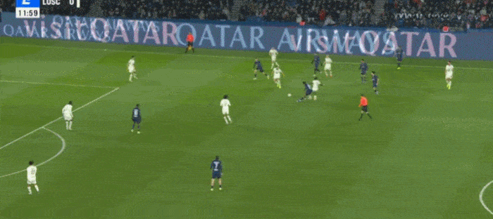 ปารีส แซงต์-แชร์กแมง วางแผนการส่งบอลผ่านกลางสนามอย่างสวยงาม โดย เอ็ดดี้ เป็นผู้ส่งบอลให้กับ อูสมาน เดมเบเล่ ซึ่งวิ่งเข้าไปในเขตโทษ ณ จุดนี้ เดมเบเล่ยืนอยู่เพียงลำพังในกรอบเขตโทษของลีลล์ ท่ามกลางกองหลังสี่คนของลีลล์ เดมเบเล่ยังคงนิ่งสงบอย่างสมบูรณ์ ก่อนจะทำการหลอกล่อด้วยการเคลื่อนตัวไปทางข้างสองครั้งติดต่อกัน ซึ่งทำให้กองหลังทั้งแถวของลีลล์สับสนไปหมด