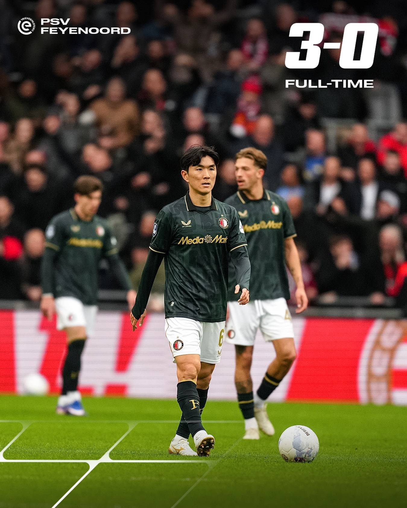 ฮวาง อิน-บอม ซึ่งกลายเป็นนักเตะชาวเกาหลีใต้เพียงคนเดียวที่ยังเหลืออยู่ในศึกยูโรปาลีกกลางสัปดาห์ที่ผ่านมา ต้องพบกับความพ่ายแพ้อีกครั้งเมื่อคืนนี้ ในการแข่งขันนัดสำคัญระหว่างทีมจ่าฝูงในศึกเอเรดิวิซี ทีมเฟเยนูร์ดของเขา ซึ่งขาดผู้เล่นหลายรายจากอาการบาดเจ็บและการติดโทษแบน เสียสามประตูภายในเวลาเพียง 17 นาที พ่ายแพ้ให้กับจ่าฝูงของลีกอย่างพีเอสวี ไอน์โฮเฟน ไป 0-3เล่นในตำแหน่งกองกลางตัวรุก ฮวาง อิน-บอม วิ่งขึ้นลงสนามอย่างต่อเนื่อง โดยทำสำเร็จ 32 ครั้ง การยิงของเขาในนาทีที่ 29 ถูกบล็อก และการแอสซิสต์ของเขาในนาทีที่ 32 ถูกเพื่อนร่วมทีมทำพลาด อย่างไรก็ตาม ทีมก็ไม่สามารถพลิกสถานการณ์ได้ ในนาทีที่ 64 โรบิน ฟาน เพอร์ซี ถูกส่งลงสนามแทน ฮวาง ซึ่งเป็นการบ่งบอกถึงการยอมแพ้ในเกมนี้ความพ่ายแพ้ครั้งนี้ทำให้ช่องว่างระหว่างเฟเยนูร์ดกับคู่แข่งเพิ่มขึ้นเป็น 17 คะแนน หากไนจ์เมเกนซึ่งมีเกมในมือสามารถคว้าชัยชนะได้ ตำแหน่งอันดับสองของเฟเยนูร์ดอาจตกอยู่ในความเสี่ยง นี่เป็นสถานการณ์ที่น่าเสียดายอย่างยิ่ง