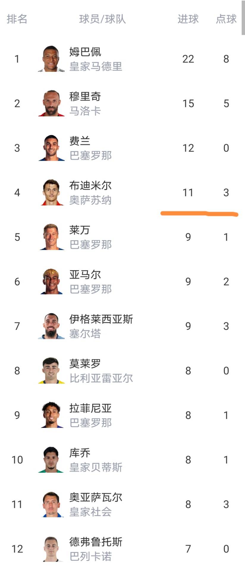 ผู้เล่นสี่คน รวมถึง คีเลียน เอ็มบัปเป้ ได้ทำประตูถึงสองหลักในตารางคะแนนแล้ว เอ็มบัปเป้ครองตำแหน่งนำอย่างมั่นคง และหากไม่มีเหตุการณ์ที่ไม่คาดคิดเกิดขึ้น เขาจะคว้าตำแหน่งดาวซัลโวสูงสุดของลาลีกาในฤดูกาลนี้อย่างแน่นอน