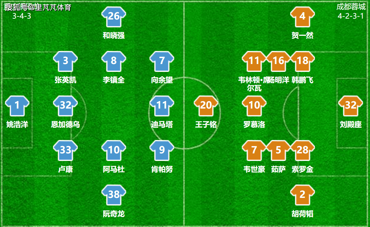 เฉิงตู หงเฉิง เปิดตัว: 32-Liu Dianzu, 2-hu hetao, 4-he Yiran, 18-han pengfei, 28-Sorokin (F), 5-Maxius Josa (F), 10-Romulo (F), 16-Yang Mingyang, 7-Wei Shihao, 11-Wellington Silva (F), 20-Wing Ziming