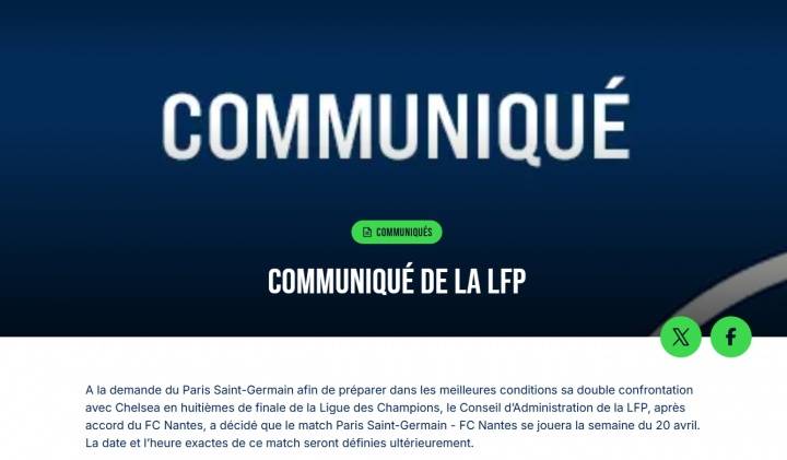 ลีกเอิงอย่างเป็นทางการให้เหตุผลสำหรับความล่าช้าในเกม: เพื่อให้แน่ใจว่าฝรั่งเศสรักษาอันดับที่ห้าในตารางยูฟ่าซึ่งได้รับสี่ตำแหน่งในแชมเปี้ยนส์ลีก และไม่เพียงแต่เกมกับเลนส์จะถูกเลื่อนออกไปเท่านั้น หากปารีสเข้าสู่รอบรองชนะเลิศ ให้พิจารณาเลื่อนตำแหน่งแลนซ์ที่ 33 กับน็องต์จนถึงวันศุกร์ที่ 8 พฤษภาคม ไม่ใช่เรื่องแปลกที่ลีกจะหลีกทางให้แชมเปี้ยนส์ลีก แต่การปรับตารางเวลาอย่างเข้มข้นก็เหมือนกับที่ Lens ประกาศก่อนหน้านี้: การตีความความเป็นธรรมด้านกีฬาที่แทบจะหาได้ยากในลีกชั้นนำอื่นๆ ในยุโรป