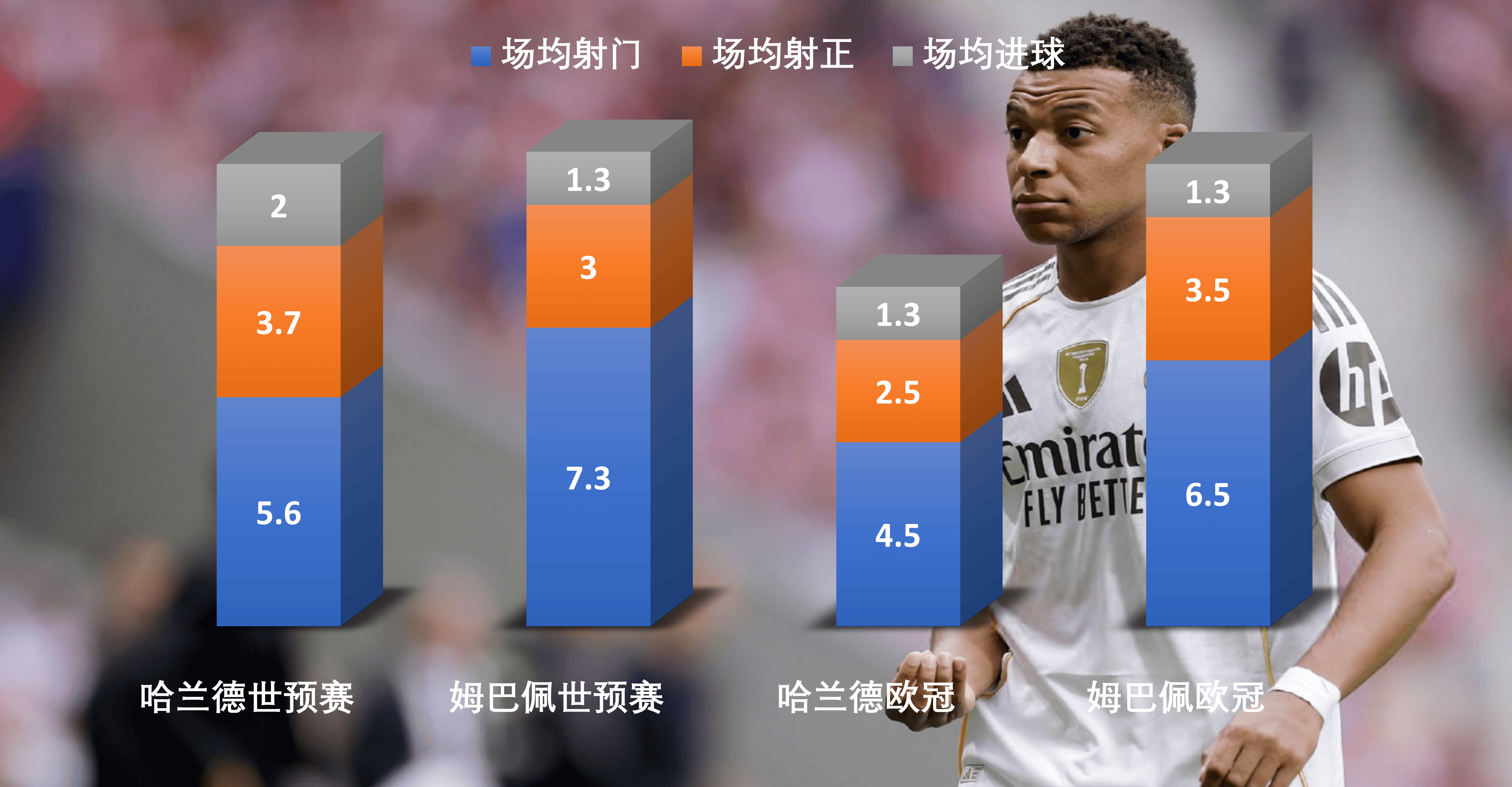 นอกเหนือจากนี้, เอ็มบัปเป้ยังเผชิญกับปัญหาสำคัญอีกประการหนึ่ง:ในระหว่างการโต้กลับ, เขาไม่สามารถดันไปข้างหน้าได้, ทำให้เพื่อนร่วมทีมต้องส่งบอลให้เขา และทำให้โอกาสในการยิงประตูของทีมถูกกระจุกตัวอยู่ที่ตัวเขาเพียงคนเดียว.อย่างไรก็ตาม, การวิเคราะห์ทางสถิติเผยให้เห็นว่าประสิทธิภาพการยิงประตูของเขาอยู่ในระดับที่ต่ำกว่าฮาแลนด์อย่างมาก.