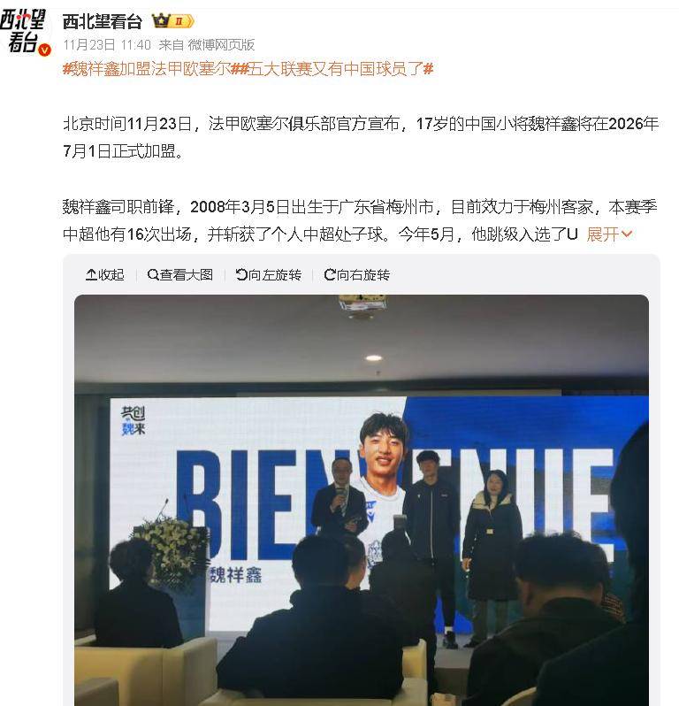 เหตุผลนั้นค่อนข้างชัดเจน ในช่วงทดลองงานสามสัปดาห์ของเขา เว่ยเซียงซินได้ฝึกซ้อมกับทีมบีของอ็อกเซร์ร ฐานรากที่มั่นคง ความแข็งแกร่งทางร่างกายที่น่าประทับใจ และทัศนคติที่กระตือรือร้นในการฝึกซ้อมของเขาได้สร้างความประทับใจอย่างลึกซึ้งให้กับทีมโค้ช ที่น่าสังเกตยิ่งกว่านั้นคือ เขาได้รับการคัดเลือกจาก The Guardian ให้เป็นหนึ่งใน 60 ดาวรุ่งที่มีอนาคตไกลที่สุดของโลกประจำปี 2025 โดยเป็นนักเตะชาวจีนเพียงคนเดียวที่ติดโผในรายชื่อนี้พายุแห่งความเยาว์กำลังก่อตัวขึ้น และอนาคตของฟุตบอลจีนเต็มไปด้วยความหวังอันยิ่งใหญ่! เราขอส่งความปรารถนาดีอย่างสุดซึ้งไปยัง เว่ย เซียงซิน พร้อมทั้งตั้งตารอคอยให้นักเตะดาวรุ่งที่เกิดหลังปี 2008 และ 2010 ได้แสดงศักยภาพให้โลกได้ประจักษ์: ฟุตบอลจีนไม่ได้มีเพียง อู๋ เล่ย เท่านั้น แต่ยังมีนักเตะรุ่นใหม่ที่กำลังเติบโตอีกมากมาย! คุณคิดว่า เมอิโจว ฮากกา เอฟซี จะยอมรับการตกชั้นเพื่อเปิดทางให้ เว่ย เซียงซิน ได้ไปค้าแข้งในต่างประเทศหรือไม่?