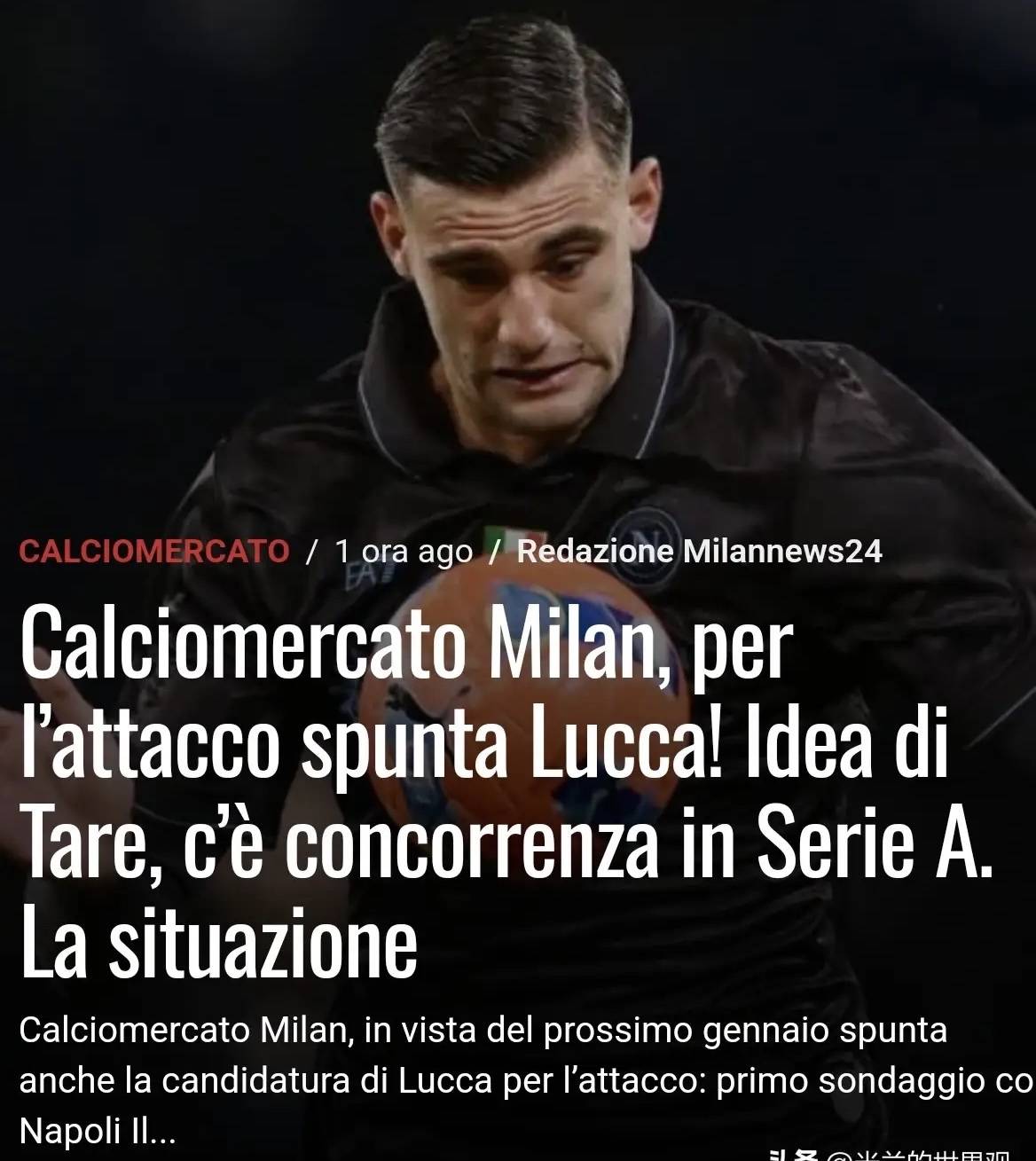 ในขณะเดียวกัน ผู้ที่อาจเข้ามาแทนที่ก็เริ่มปรากฏตัวขึ้นเรื่อยๆ โดยมีชื่อของลอเรนโซ ลูคา ขึ้นมาเป็นเป้าหมายที่เป็นไปได้สำหรับมิลาน กองหน้าคนนี้ซึ่งปัจจุบันถูกยืมตัวไป อาจเป็นโอกาสที่ดีเยี่ยมดิ มาร์ซิโอ เน้นย้ำว่า ด้วยสถานการณ์ทางแท็กติกของสโมสรใหญ่ๆ อื่นๆ ลูคา มีแนวโน้มสูงที่จะมองหาการย้ายทีม: "ลูคาอาจกลายเป็นจุดสนใจในการย้ายทีม ด้วยการกลับมาของโรเมลู ลูกากู นาโปลีจึงมีเพียงศูนย์หน้าคนเดียวคือ โฮจ์ลุนด์ ลูคาอาจกลายเป็นเป้าหมายของทั้งมิลานหรือโรม่าในช่วงตลาดซื้อขายเดือนมกราคม" ในแง่ของลักษณะและโอกาส นักเตะรายนี้ตรงตามความต้องการของรอสโซเนรี่อย่างสมบูรณ์แบบ