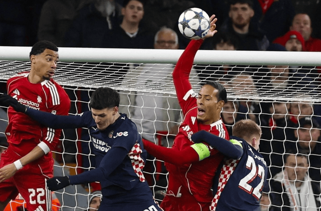 แชมเปียนส์ลีก - ฟาน ไดจ์ค เสียจุดโทษ, โซโบล ทำประตู ขณะที่ลิเวอร์พูลพ่ายแพ้ 1-4 ต่อพีเอสวี ไอน์โฮเฟน, ทำให้สถิติการแพ้ติดต่อกันในลีกเพิ่มขึ้นเป็น 3 นัด บอสโรย พื้นที่จุดโทษ เปริซิช