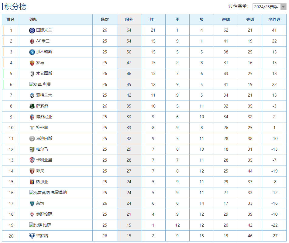ตารางคะแนนล่าสุดของเซเรียอา: อินเตอร์ มิลาน คว้าชัยชนะติดต่อกันเป็นครั้งที่เจ็ด นำเป็นจ่าฝูงด้วยคะแนน 10 แต้ม; ยูเวนตุส ยังคงอยู่อันดับที่ห้า แม้จะไม่สามารถเอาชนะได้ในสามนัดติดต่อกัน! มาร์โก โคมา ทำประตู