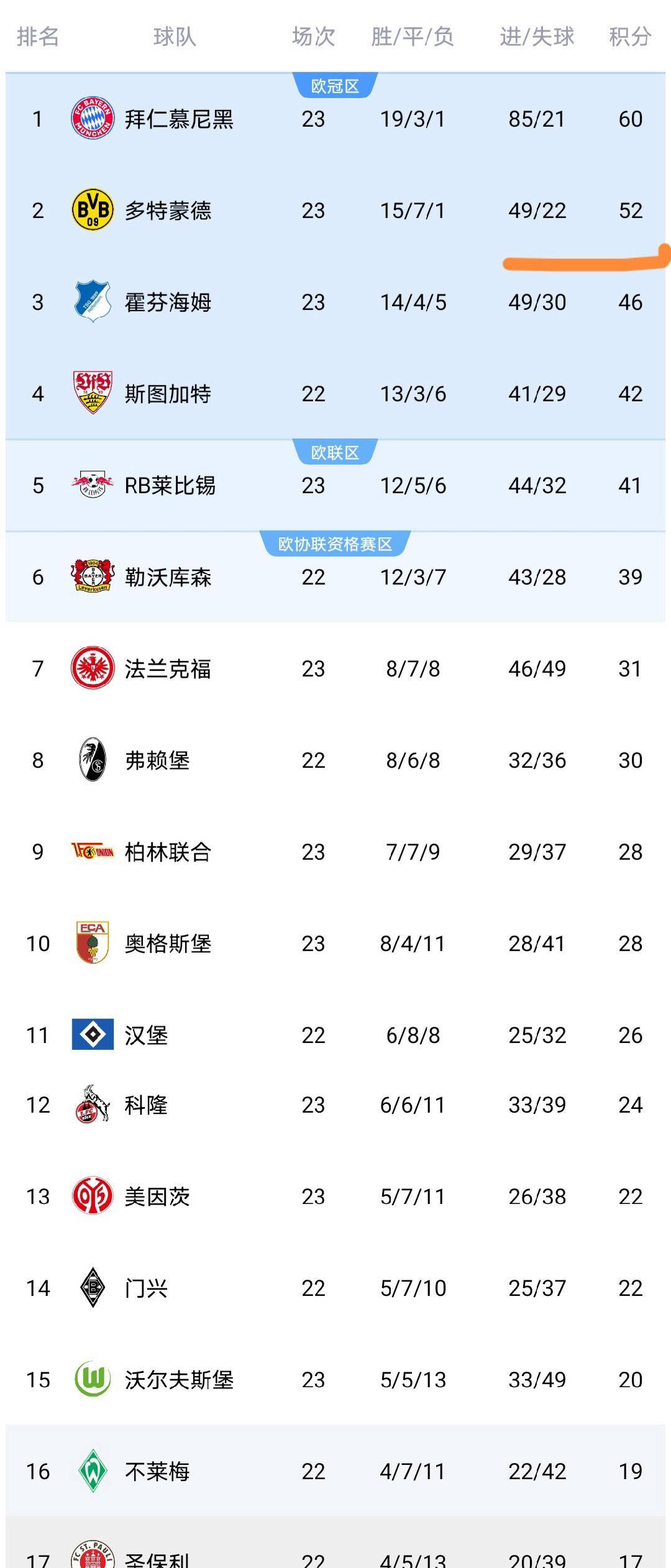 อัปเดตอันดับล่าสุดบุนเดสลีกา: ดอร์ทมุนด์เสมอ 2-2, บาเยิร์นชนะ 3-2, เลเวอร์คูเซ่นแพ้ 0-1_ฮอฟเฟ่นไฮม์_แฟรงค์เฟิร์ต_บาเยิร์น มิวนิค