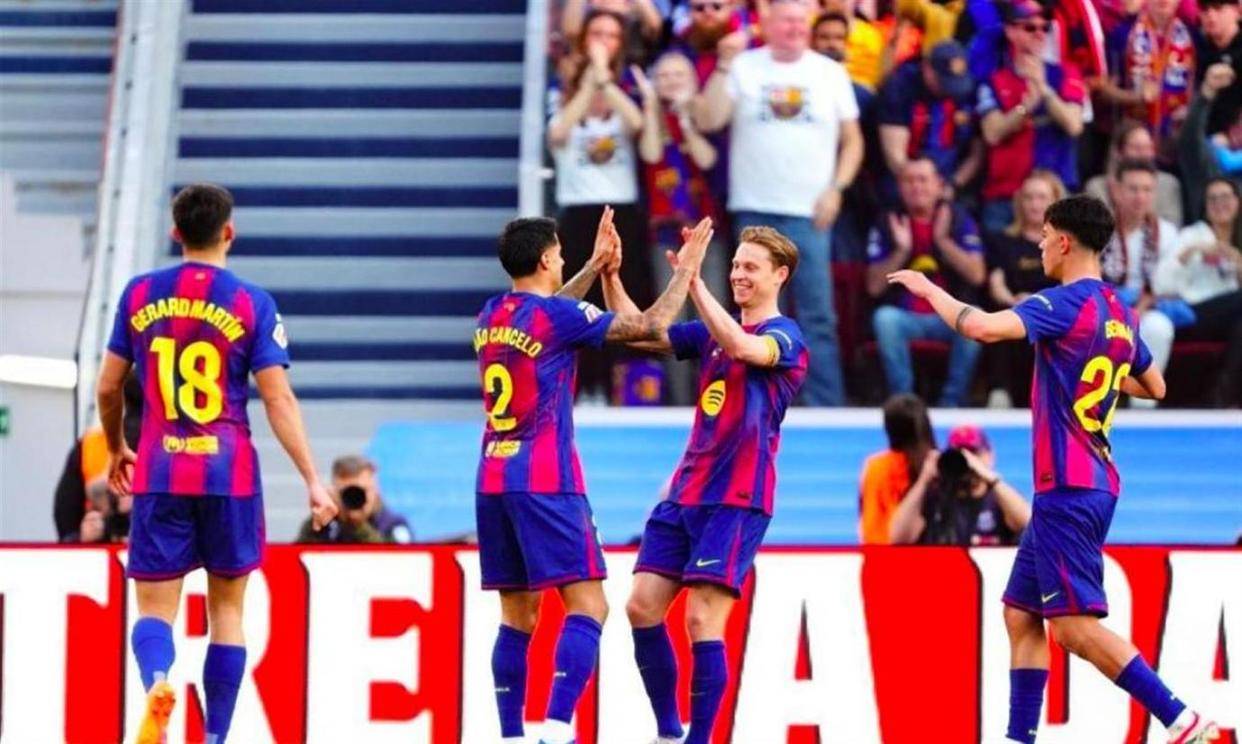 อย่างไรก็ตาม ความแตกต่างอย่างมากในคุณภาพก็ปรากฏให้เห็นอย่างรวดเร็ว บาร์เซโลนาควบคุมจังหวะของเกมได้อย่างรวดเร็ว ในนาทีที่สาม แบ็คซ้ายอย่าง João Cancelo โชว์ทักษะเดี่ยวทางริมเส้น ใช้การเปลี่ยนจังหวะและการเลี้ยงบอลที่คล่องแคล่วสลัดตัวประกบออกไปอย่างง่ายดาย ก่อนจะเปิดบอลข้ามไปอย่างแม่นยำ น่าเสียดายที่เสาไกล Koundé ที่ไม่มีผู้เล่นประกบเลย กลับวอลเลย์บอลข้ามคานไปอย่างน่าเสียดาย พลาดโอกาสทองไปอย่างน่าเสียดาย