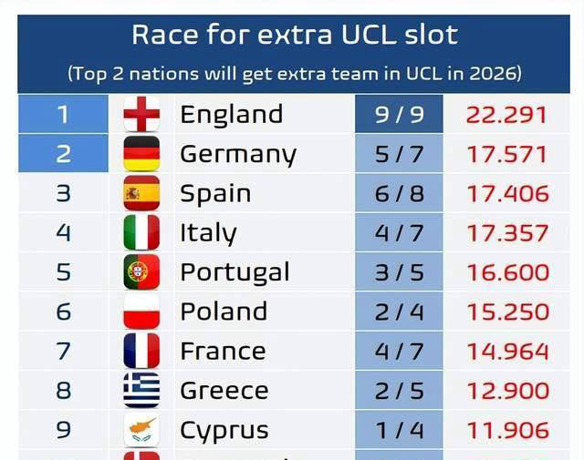 ในที่สุด การจัดอันดับสัมประสิทธิ์ยูฟ่าประจำสัปดาห์นี้ก็ถูกเปิดเผยออกมา โดยพรีเมียร์ลีกยังคงนำอย่างสบายๆ ด้วยคะแนน 22.291 คะแนน มีทีมที่น่าทึ่งถึง 9 ทีมที่ผ่านเข้าสู่รอบ 16 ทีมสุดท้ายของการแข่งขันยุโรป ซึ่งทำให้พวกเขาได้ตำแหน่งในแชมเปียนส์ลีกอย่างแน่นอนทั้งบุนเดสลีกาและลาลีกาต่างมีสองทีมตกรอบ ขณะที่เซเรียอาเสียสามทีม ทำให้อยู่ในอันดับที่สี่ด้วยคะแนน 17.357 คะแนน – สถานการณ์ที่เริ่มตึงเครียดขึ้นบ้าง ด้วยเยอรมนีและสเปนที่มีคะแนนใกล้เคียงกัน การแข่งขันเพื่อชิงตำแหน่งเพิ่มเติมในแชมเปียนส์ลีกกำลังทวีความรุนแรงขึ้น เดือนต่อๆ ไปสัญญาว่าจะมีการแข่งขันที่น่าตื่นเต้นยิ่งขึ้นบนเวทีฟุตบอลของยุโรป