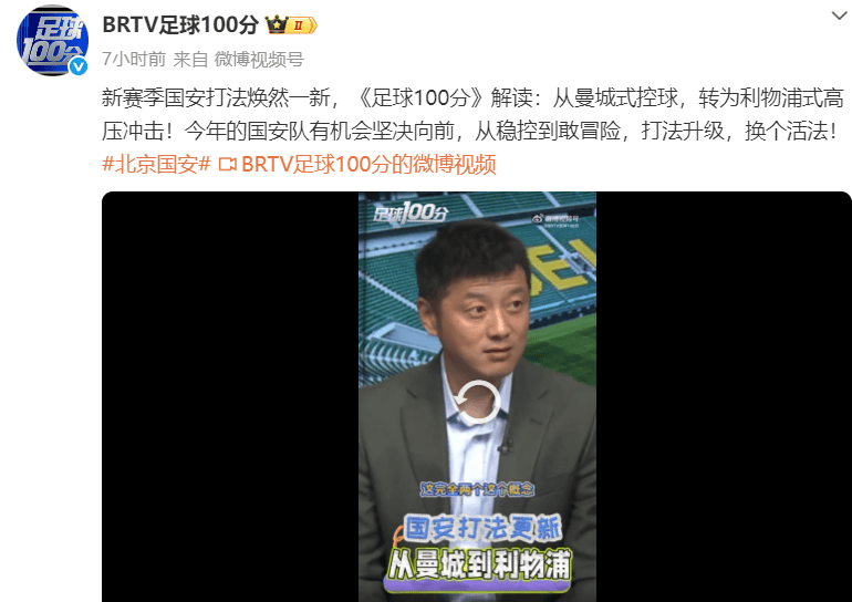 Weibo อย่างเป็นทางการของ "ฟุตบอล 100 คะแนน" อ่านว่า: จากการควบคุมบอลสไตล์แมนเชสเตอร์ซิตี้ไปจนถึงผลกระทบแรงดันสูงสไตล์ลิเวอร์พูล! ทีม Guoan ในปีนี้มีโอกาสที่จะก้าวไปข้างหน้าอย่างเด็ดเดี่ยว ตั้งแต่การควบคุมที่มั่นคงไปจนถึงการเสี่ยง การเพิ่มสไตล์การเล่น และเปลี่ยนวิถีชีวิต!