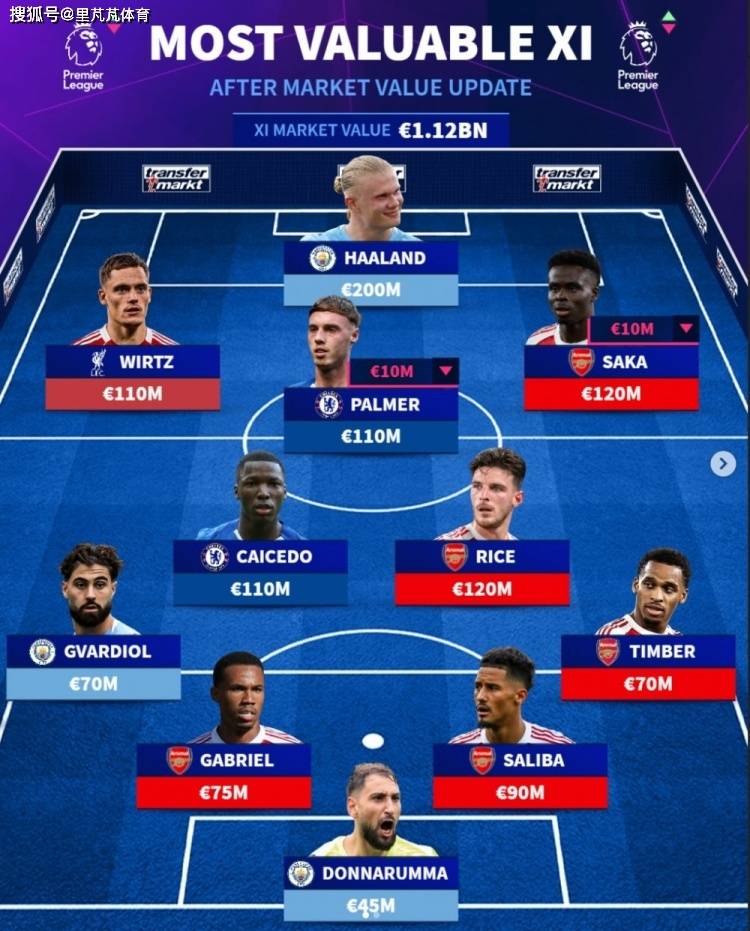 ตลาดซื้อขายนักเตะในเยอรมันได้ปรับปรุงมูลค่าของผู้เล่นในพรีเมียร์ลีกและระบุมูลค่าสูงสุดของผู้เล่น 11 คน มูลค่ารวม 11 คน 200 ล้านยูโร อาร์เซนอล ซึ่งเป็นผู้ชนะที่ยิ่งใหญ่ที่สุดคือ อาร์เซนอล ทีม 200 ล้านยูโร โดยมีซาลิบา (90 ล้านคน), กาเบรียล (75 ล้านคน), ไรซ์ (120 ล้านคน), ซาก้า (120 ล้าน) และทินเบิร์ก (70 ล้าน) ผู้เล่นได้รับเลือก ไคเซโดะ ของเชลซี (110 ล้าน) และพาลเมอร์ (110 ล้าน), วิลซ์ของลิเวอร์พูล (110 ล้าน) และ Harland, Donnarumma ของแมนเชสเตอร์ซิตี้ (45 ล้าน), Gvadiol (70 ล้าน) ประกอบขึ้นเป็นผู้เล่นตัวจริงที่หรูหรานี้