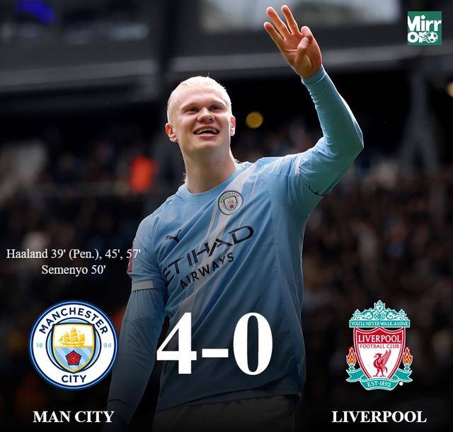 ด้วยการทำแฮตทริกของฮาร์แลนด์และประตูของเซเมนิโอ แมนเชสเตอร์ ซิตี้ ชนะ 4-0 ลิเวอร์พูล และพวกเขาได้บุกเข้าสู่รอบรองชนะเลิศของเอฟเอ คัพ อย่างแข็งแกร่ง โดยสร้างสถิติใหม่ให้กับทีมประวัติศาสตร์ 89 ปีที่สังหารสามครั้งในลิเวอร์พูลในฤดูกาลนี้!