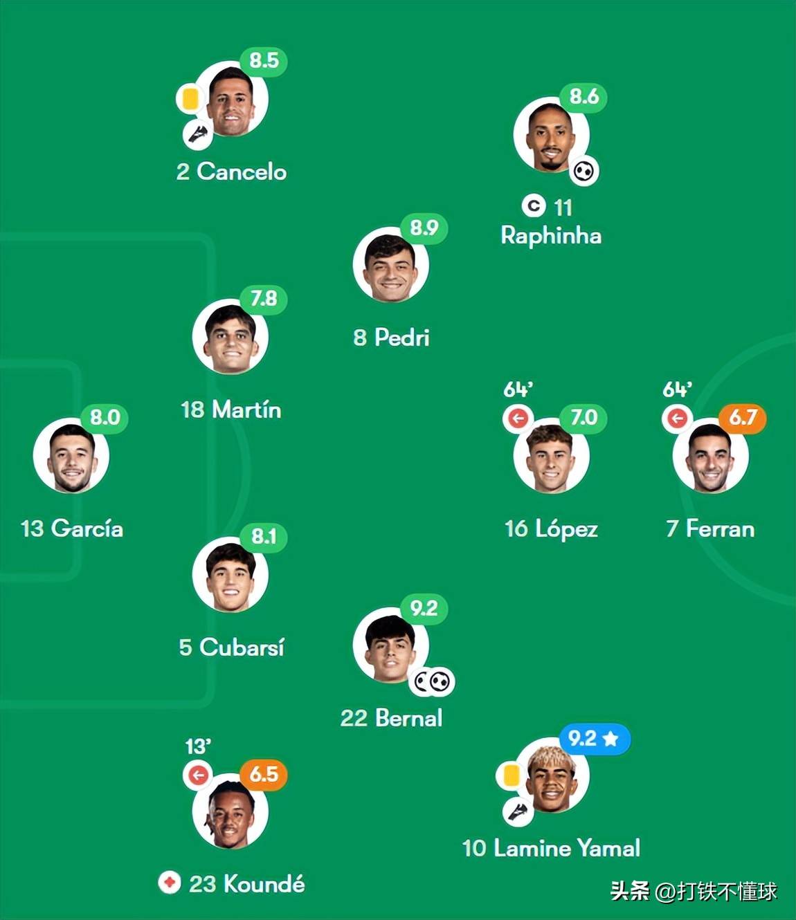 ย้อนกลับไปที่การแข่งขันรอบแรกในคิงส์คัพครั้งก่อน แอตเลติโก มาดริด เคยเอาชนะบาร์เซโลน่า 4-0 ในบ้าน ในเวลานั้น เพดรี แห่งบาร์เซโลน่า ออกมาเนื่องจากได้รับบาดเจ็บ ทำให้กองกลางของทีมถูกแอตเลติโก มาดริด คุมทีมได้อย่างสมบูรณ์ อย่างไรก็ตาม ในรอบที่สอง หลังจากที่ Pedry กลับมาจากอาการบาดเจ็บ บาร์เซโลนาตอบโต้อย่างแข็งแกร่งด้วยคะแนน 3-0 และทำการแก้แค้นที่สมบูรณ์แบบ เป็นที่น่าสังเกตว่าแม้ว่า Pedry ไม่มีประตูหรือแอสซิสต์ในเกม แต่เขาก็ได้อันดับสองในทีมหลังเกมด้วยผลงานที่ยอดเยี่ยมของเขา ตลอดทั้งเกม เขาจ่ายบอลได้ 91 ครั้งอย่างน่าทึ่ง โดยจ่ายบอลยาว 10 ครั้งนั้นแม่นยำทั้งหมด และ 6 ลูกตุ้มที่สำคัญ อาจกล่าวได้ว่าทั้งสองฝ่ายรุกและแนวรับได้แสดงให้เห็นถึงความสามารถที่ยอดเยี่ยมของ "การบูรณาการของความผิดและการป้องกัน"