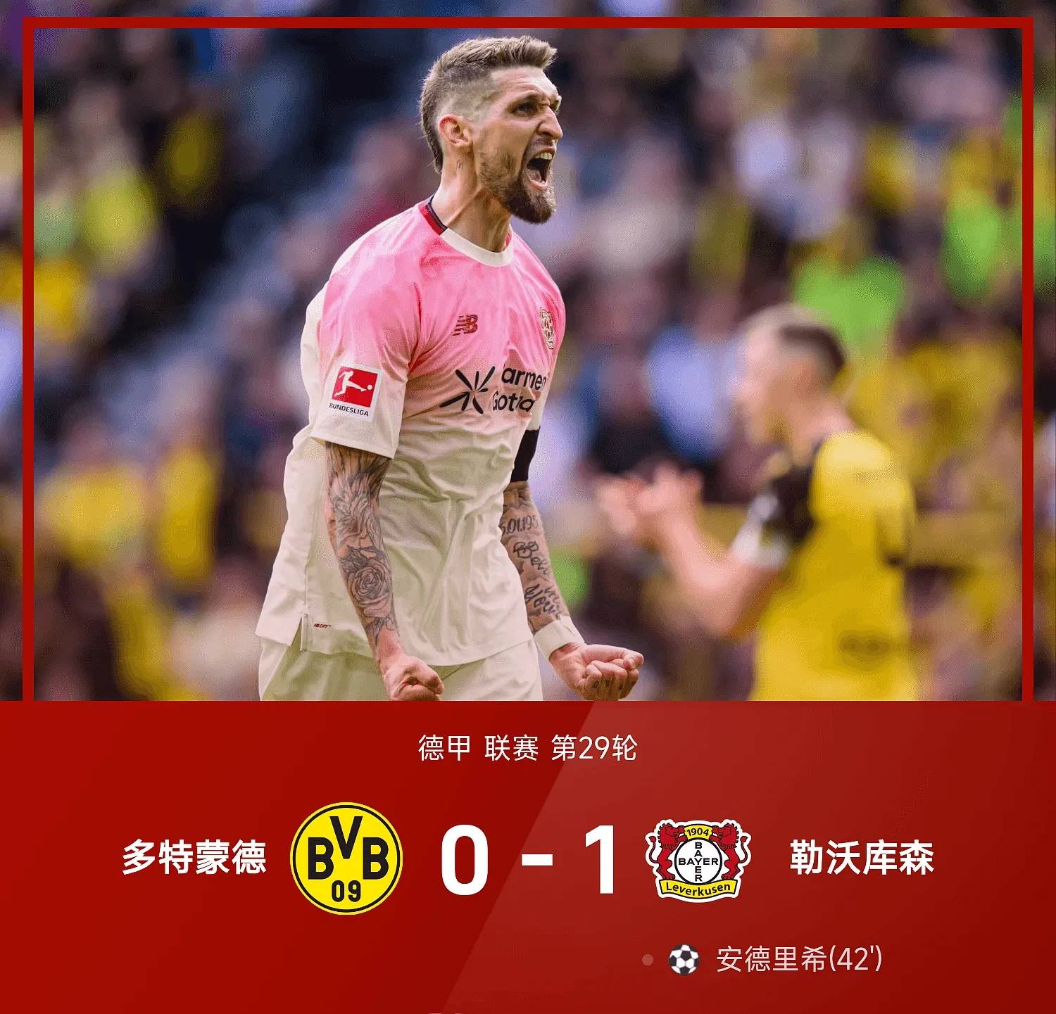 ในรอบที่ 29 ของบุนเดสลีกาในฤดูกาลที่ 25/26 โบรุสเซีย ดอร์ทมุนด์เล่นในบ้านกับเลเวอร์คูเซ่น ในครึ่งแรก สเวนซอง วอลเลย์ และถูกโหม่งของลูกหัวประตูของแบด Andrich ยึดความผิดพลาดของ Dortt และทำลายคลื่นโลกเพื่อทำลายการหยุดชะงัก ในครึ่งหลัง Tyra พลาดโอกาสและ Gilasy ยิงมุมเล็ก ๆ ที่คานประตู ในท้ายที่สุด ดอร์ทมุนด์ แพ้ 0-1 ให้กับเลเวอร์คูเซ่น, ดอร์ทมุนด์ 64 แต้ม, เลเวอร์คูเซ่น ขึ้นที่ 5 ด้วยคะแนน 52 แต้ม,