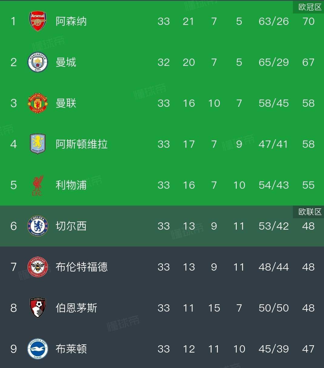 หลังจบพรีเมียร์ลีก 33 นัด บรรยากาศของลีกทั้งลีกเปลี่ยนไปอย่างสิ้นเชิง หลังแมนฯซิตี้ชนะ 2-1 ในบ้าน อาร์เซนอล 1 เกม สะสม 70 แต้ม แมนฯ ซิตี้ สะสม 64 แต้ม และความแตกต่างระหว่างสองฝ่ายก็เหลือเพียง 3 แต้มเท่านั้น รวมถึง 3 แต้มกับ คริสตัล พาเลซ ในนัดที่แต่งหน้า แมนเชสเตอร์ ซิตี้ สามารถเสมอ อาร์เซน่อล ได้ ตราบเท่าที่พวกเขาถูกเอาไปลง มาดูผลต่างประตูกันอีกครั้ง อาร์เซนอล 37 แมนฯ ซิตี้ 36 มีเพียง 1 ตัว และถึงขนาดนี้ก็ไม่สามารถเปิดช่องว่างได้ด้วยซ้ำ