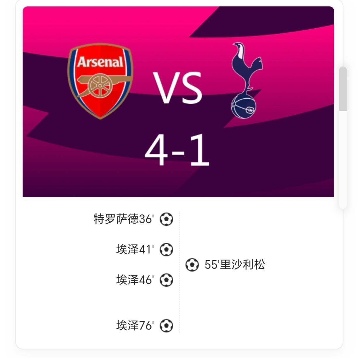พรีเมียร์ลีก แมตช์เดย์ 12: อาร์เซนอล 4-1 ท็อตแนม ฮ็อตสเปอร์ เอเซ ทำแฮตทริก, ทรอสซาร์ด ทำประตูและแอสซิสต์