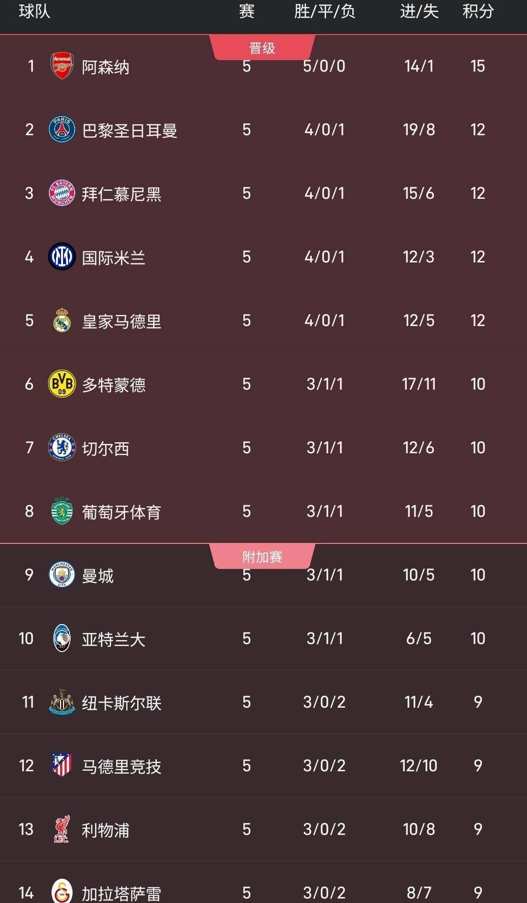อันดับปัจจุบันค่อนข้างน่าสนใจทีเดียว อาร์เซนอลยังคงไม่แพ้ใครและนำเป็นจ่าฝูงอย่างสบายๆ แต่ปารีส, บาเยิร์น, อินเตอร์ และเรอัล มาดริด มีคะแนนเท่ากันที่ 12 คะแนน ความแตกต่างเพียงประตูได้เสียเท่านั้นที่ทำให้พวกเขาอยู่ห่างกันหลายอันดับ สถานการณ์ของท็อตแนมยิ่งเลวร้ายกว่า โดยรั้งอันดับ 16 มี 8 คะแนน อยู่ในโซนเพลย์ออฟพอดี ถ้าถามผม รูปแบบใหม่ของแชมเปียนส์ลีกนี้น่าตื่นเต้นมาก ทุกนัดเหมือนเป็นนัดชิงชนะเลิศ