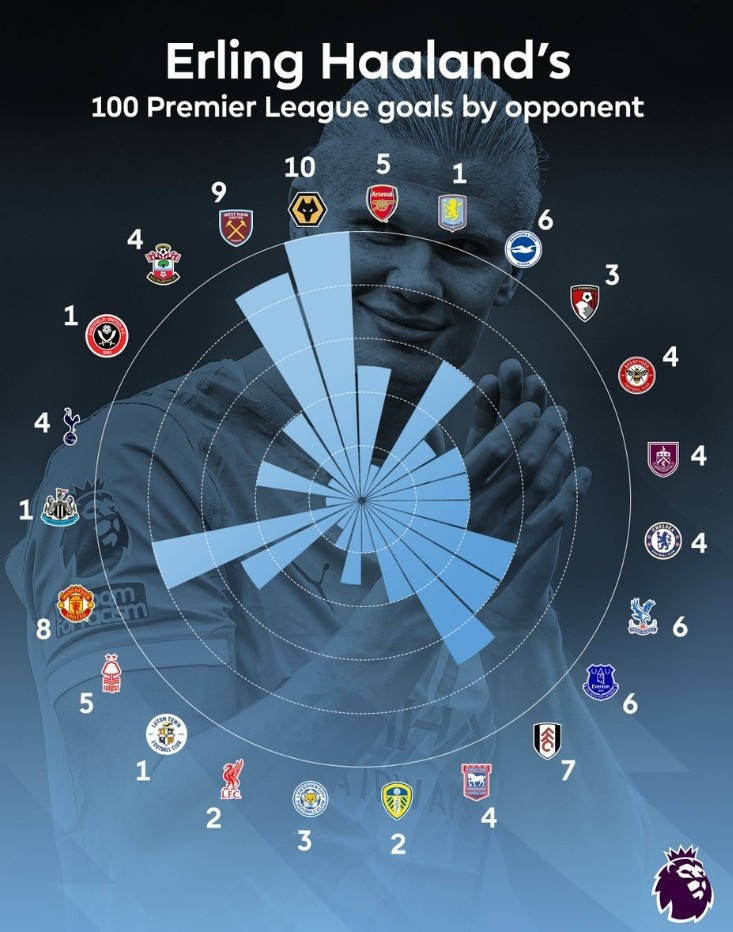 ในการแข่งขันพรีเมียร์ลีกของแมนเชสเตอร์ ซิตี้ พบกับฟูแล่ม ในนัดที่ 14 เออร์ลิง ฮาแลนด์ ทำประตูแรกของเกมเพื่อทำลายสถิติ 100 ประตูในพรีเมียร์ลีก นับตั้งแต่ทำประตูแรกในการเปิดตัวกับซิตี้ในเดือนสิงหาคม 2022 กองหน้าชาวนอร์เวย์ได้ทำลายสถิติอย่างต่อเนื่องด้วยความสามารถที่น่าทึ่งเขาทำสถิติครบ 100 ประตูได้ในเวลาเพียง 111 นัด ซึ่งน้อยกว่าสถิติเดิมของอลัน เชียเรอร์ถึง 13 นัด ด้วยอัตราการทำประตูเช่นนี้ ฮาแลนด์ได้ตั้งเป้าหมายที่จะทำลายสถิติการทำประตูสูงสุดตลอดกาลในพรีเมียร์ลีกของเชียเรอร์ที่ 260 ประตูอย่างแน่นอน