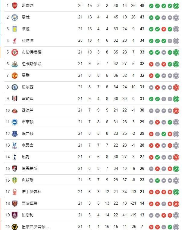 ในตารางคะแนนลีก แมนเชสเตอร์ ซิตี้ ยังคงมี 43 คะแนนหลังจากเสมอสามนัดติดต่อกัน ตามหลังจ่าฝูง อาร์เซนอล อยู่ห้าคะแนนโดยมีเกมในมือหนึ่งนัด แอสตัน วิลล่า ที่เสมอในรอบนี้ก็มี 43 คะแนนเช่นกันและอยู่ในอันดับสาม ส่วนเบรนท์ฟอร์ดที่ชนะในรอบนี้ได้เลื่อนขึ้นสู่อันดับห้า ขณะที่แมนเชสเตอร์ ยูไนเต็ด และเชลซี อยู่ในอันดับหกและเจ็ดตามลำดับ