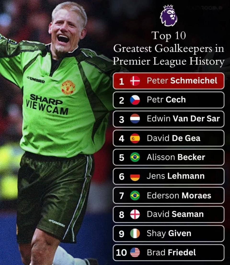 เมื่อไม่นานมานี้ แพลตฟอร์มข้อมูลฟุตบอล Footyroom ได้เปิดเผยรายชื่อผู้รักษาประตูยอดเยี่ยม "สิบอันดับแรกในประวัติศาสตร์พรีเมียร์ลีก" รายชื่อนี้รวบรวมบุคคลในตำนานมากมายจากพรีเมียร์ลีก โดยมีปีเตอร์ ชไมเคิล ผู้รักษาประตูชาวเดนมาร์ก เปตร เช็ก ตำนานชาวเช็ก และเอ็ดวิน ฟาน เดอร์ ซาร์ ผู้รักษาประตูชาวดัตช์ สร้างความโหยหาอดีตให้กับแฟนบอลรุ่นเก่านอกเหนือจากบุคคลที่เป็นสัญลักษณ์เหล่านี้แล้ว อันดับยังรวมถึงผู้รักษาประตูตัวจริงของแมนเชสเตอร์ ยูไนเต็ดในปัจจุบันอย่าง ดาบิด เด เคอา, อลิสซอน เบ็คเกอร์ ของลิเวอร์พูล และเอแดร์สัน ของแมนเชสเตอร์ ซิตี้ อยู่ในสิบอันดับแรก ด้วยการเปรียบเทียบผู้รักษาประตูจากยุคสมัยต่างๆ ทำให้รายชื่อนี้ได้ยกระดับการอภิปรายเกี่ยวกับหัวข้อนี้อย่างมาก