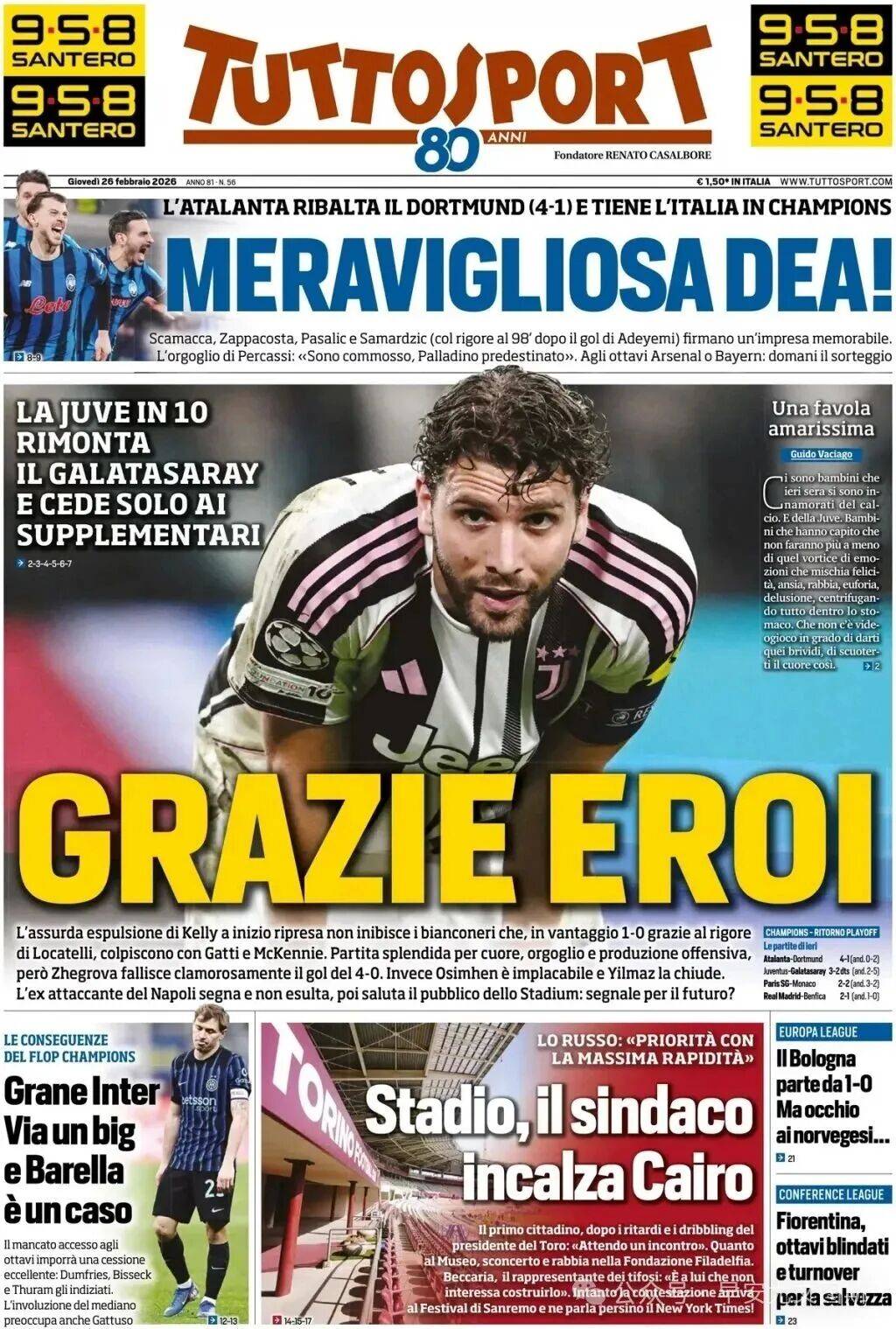 ยูเวนตุสคว้าชัยชนะในบ้านเหนือกาลาตาซาราย 3-2 โดยทำสามประตูในขณะที่เหลือผู้เล่นน้อยกว่า เพื่อบังคับให้ต้องต่อเวลาพิเศษ แต่สุดท้ายก็พ่ายแพ้ไปอย่างหวุดหวิด การตกรอบแชมเปียนส์ลีกครั้งนี้ยืนยันว่าพวกเขาจะจบฤดูกาลโดยไม่มีถ้วยรางวัลใดๆ ในทุกรายการแข่งขันสำคัญ