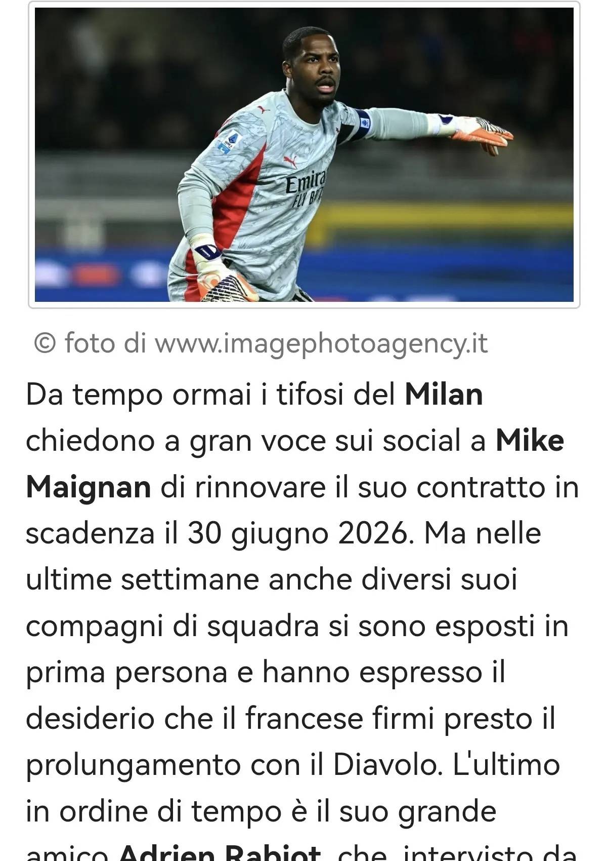 สื่ออิตาลีรายงาน: การต่อสัญญาของไมญ็องยังคงชะงักอยู่ โดยนักเตะยังคงปฏิเสธที่จะตกลงขยายสัญญากับมิลาน